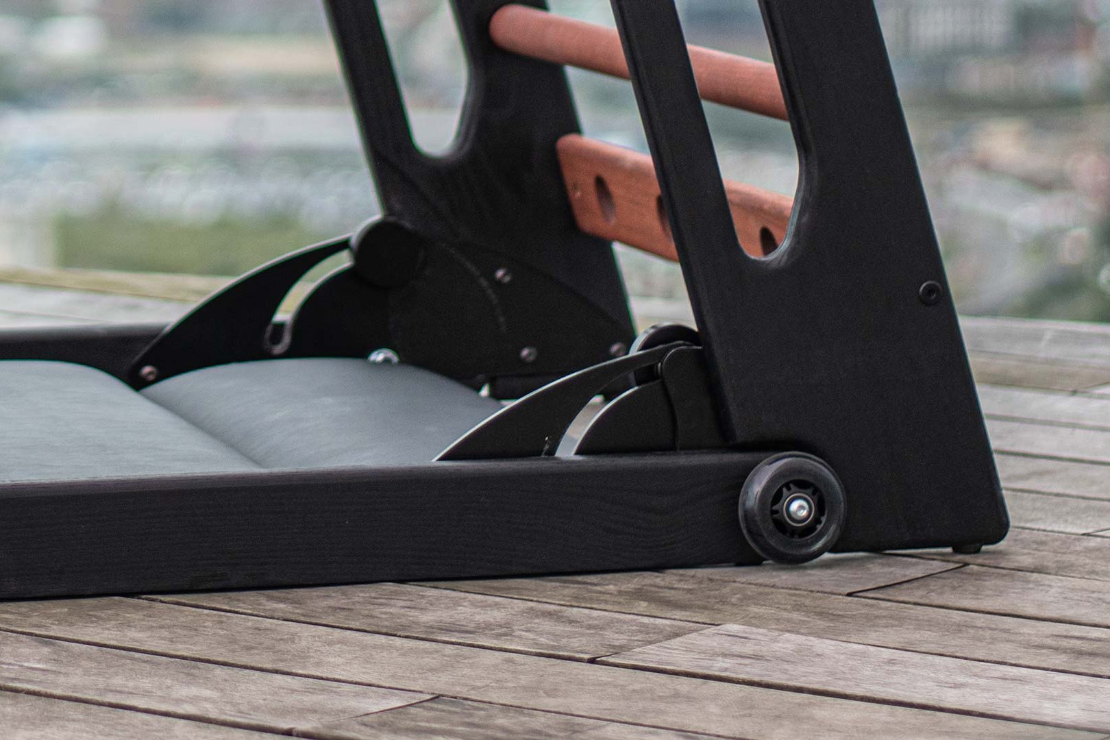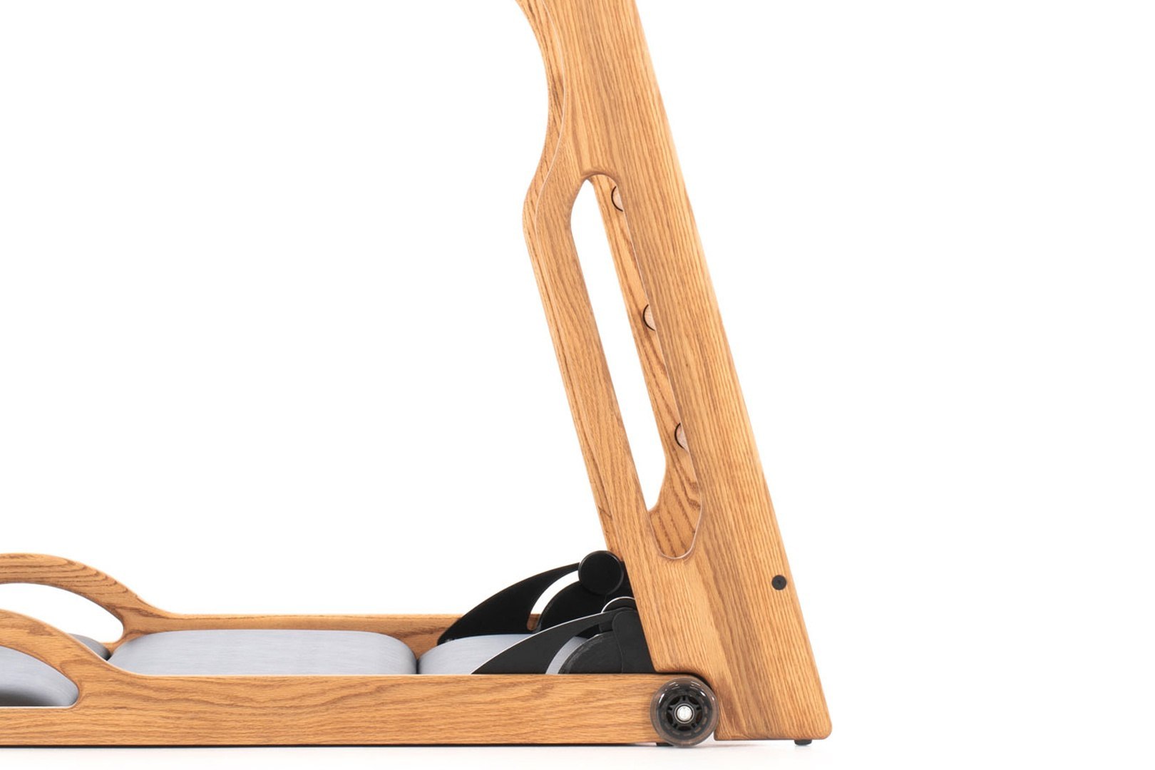 Rolki z łożyskami kulkowymi i innowacyjny mechanizm składania zapewniają łatwą obsługę, regulację i przestawienie urządzenia w pomieszczeniu.