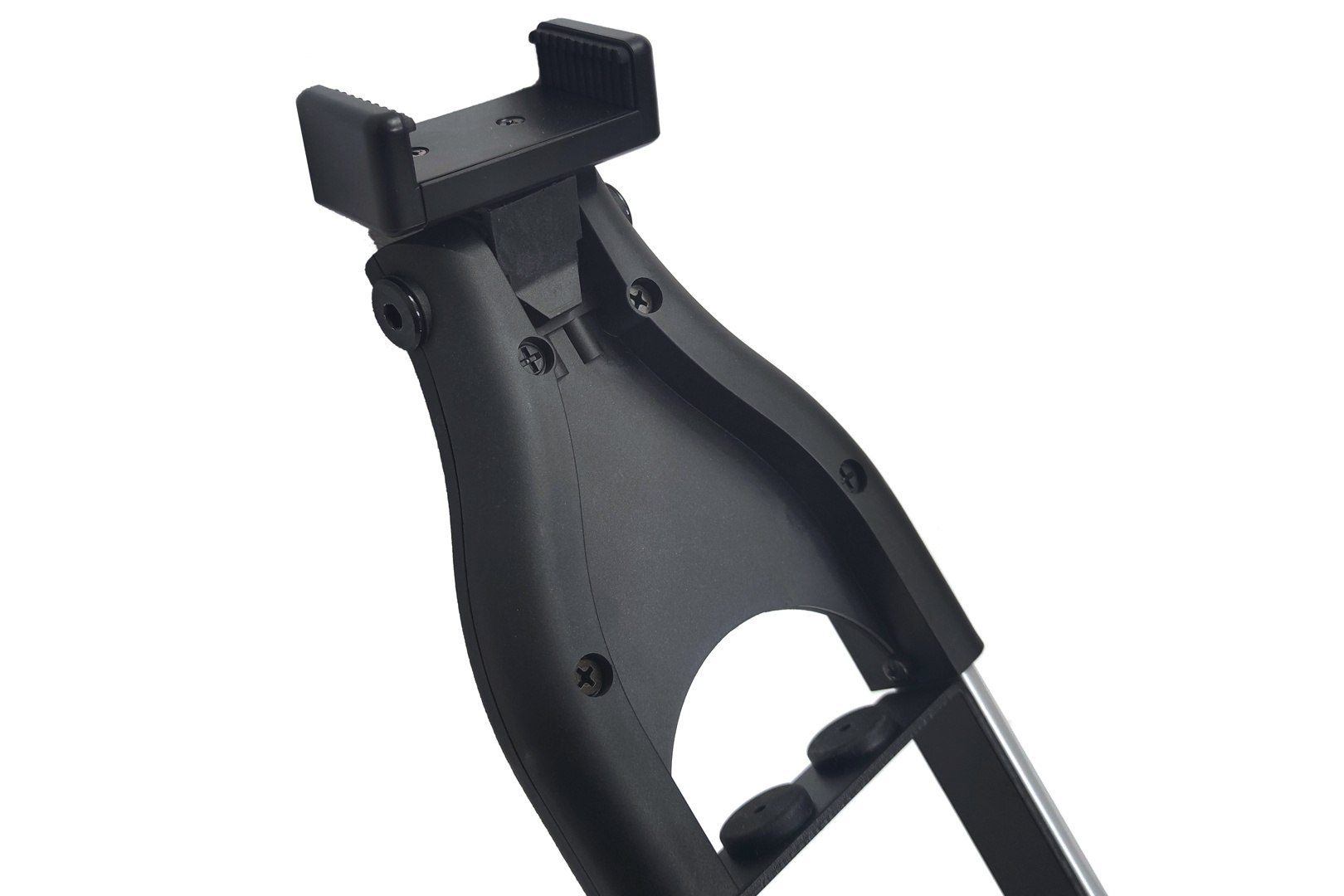 Ramię zostało wykonane z aluminium. Smartfon lub tablet możemy zamocować w pozycji pionowej bądź poziomej w zależności od preferencji użytkownika. Jeżeli ramię jest montowane razem z modułem SmartRow, należy pamiętać, że najpierw montujemy moduł SmartRow a następnie montujemy ramię (uchwyt SmartRow powinien znajdować się pod mocowaniem ramienia).