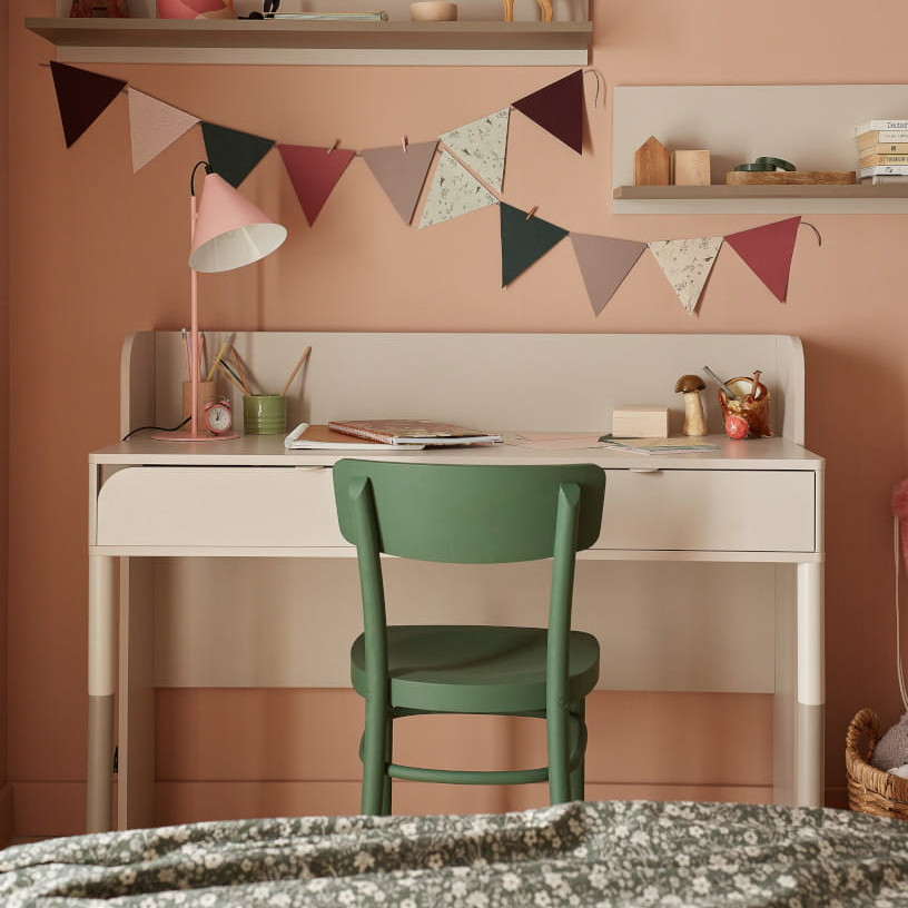 Dzięki wysokości 97 cm oraz konstrukcji uwzględniającej półki i przestrzeń na przechowywanie, biurko wspiera organizację miejsca pracy. Możesz ustawić na nim książki, segregatory, lampkę biurkową czy dekoracje, które dodadzą wnętrzu indywidualnego charakteru.