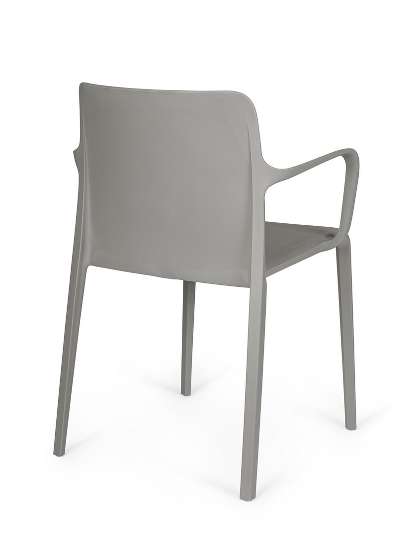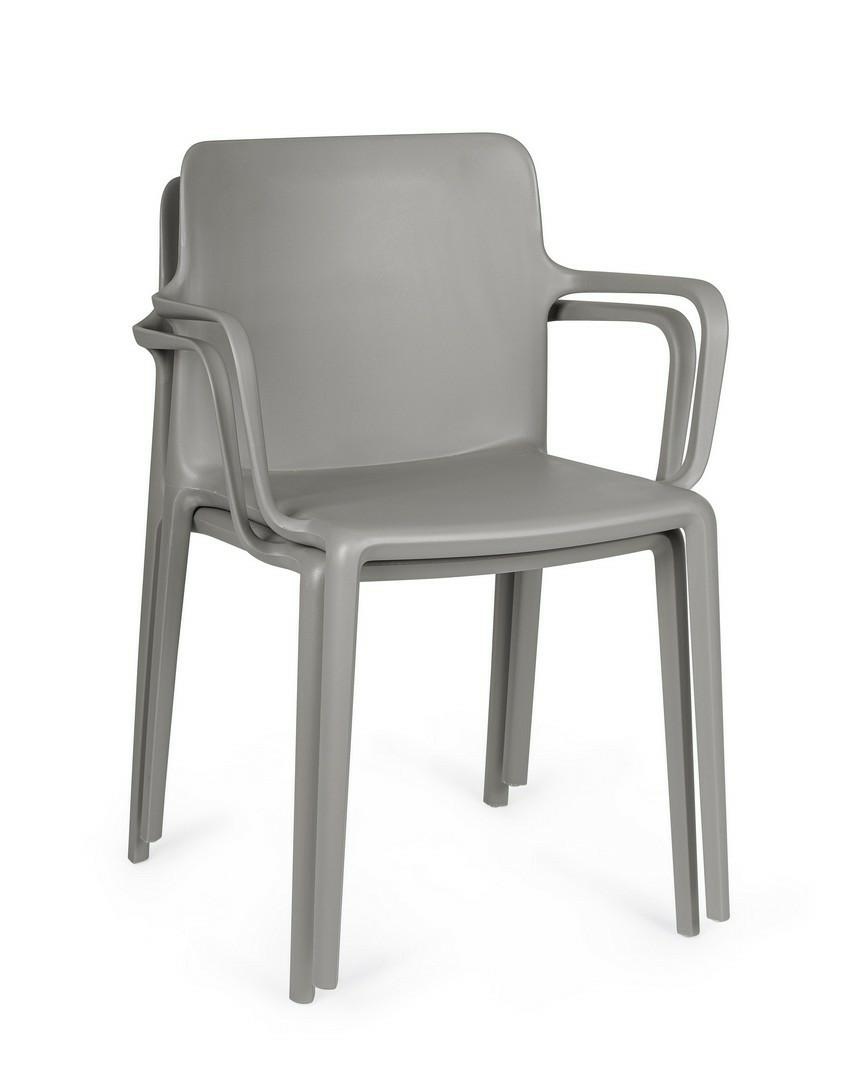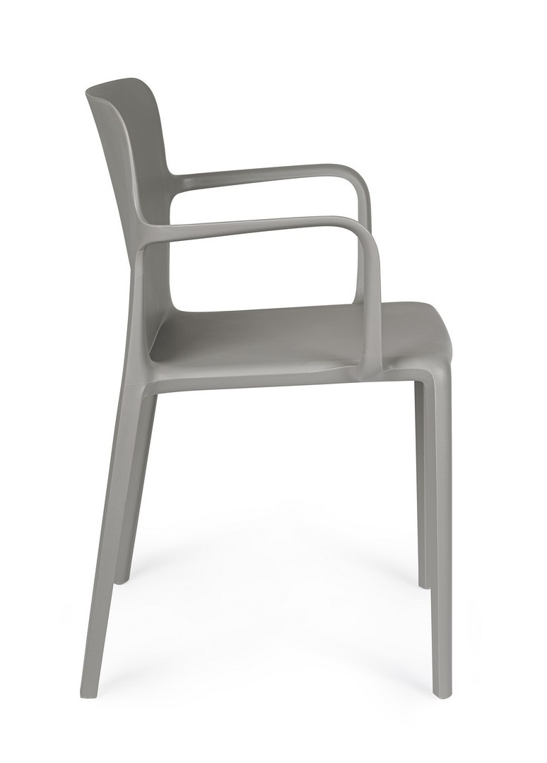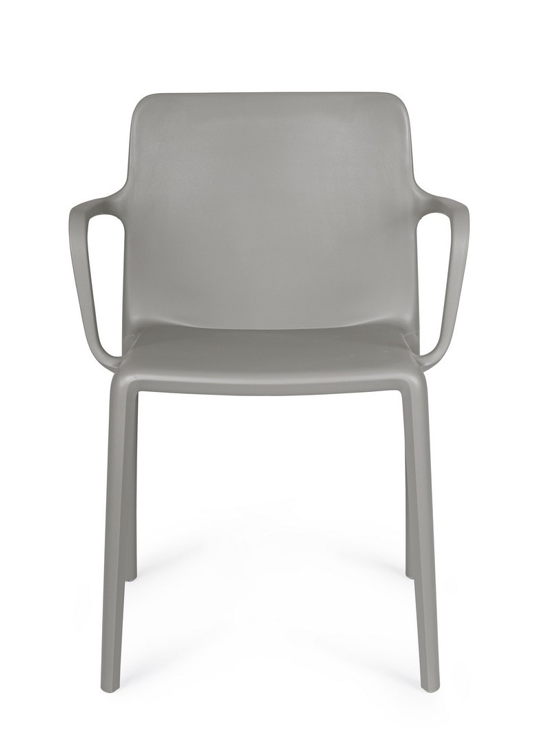 BIZZOTTO krzesło ogrodowe CHLORIS ARM szare. Minimalistyczny design połączony z wygodą tworzy spójną całość, która świetnie dopasuje się do różnych aranżacji. Lekka, a zarazem wytrzymała konstrukcja z polipropylenu jest odporna na działanie czynników atmosferycznych i promieniowanie UV. Obecność podłokietników zwiększa komfort użytkowania, oferując dodatkowe podparcie i wygodę podczas odpoczynku. Szary kolor doskonale wpisuje się zarówno w nowoczesne aranżacje tarasowe, jak i w klasyczne ogrody, tworząc eleganckie i uniwersalne tło. Funkcja sztaplowania umożliwia szybkie oraz bezproblemowe przechowywanie kilku krzeseł jednocześnie. Kolekcja Chloris to propozycja stworzona do aranżacji estetycznych i praktycznych stref relaksu. Wymiary: wys. 80 cm / szer. 50,5 cm / gł. 56 cm Waga brutto: 5,15 kg.