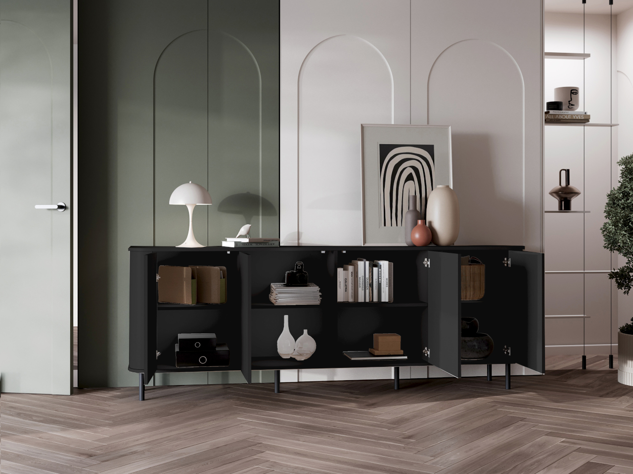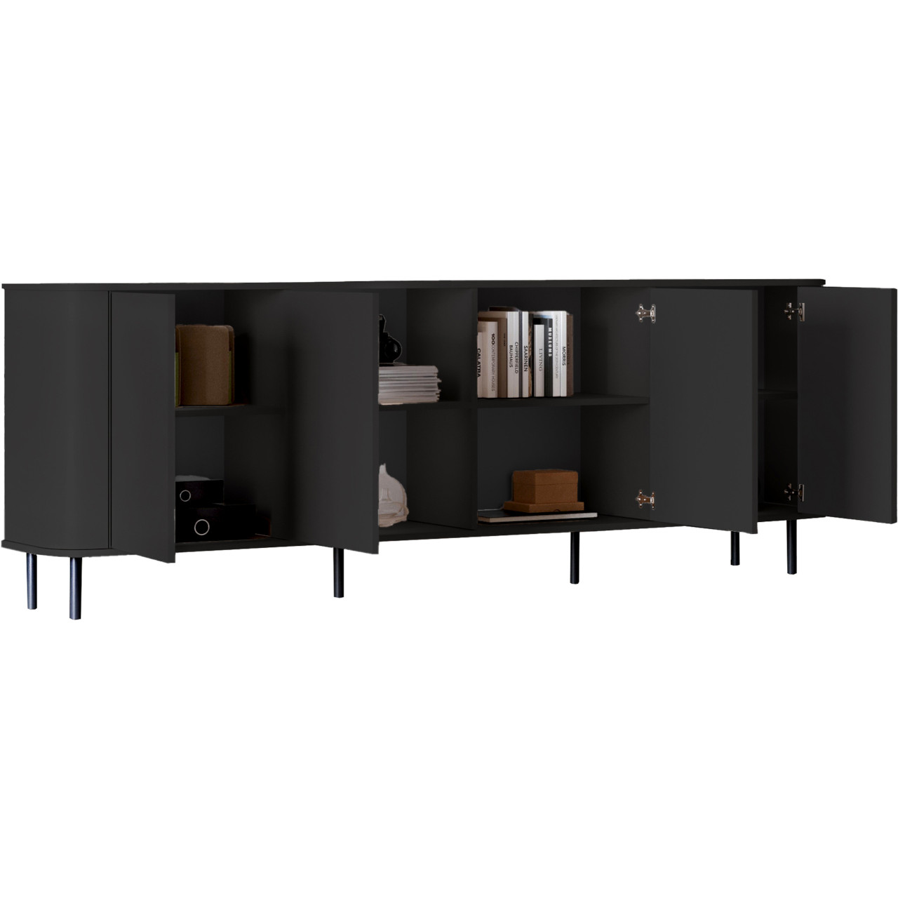 Wybierz komodę 4DN AZELIO czarny i stwórz wnętrze, w którym każdy detal jest dopracowany, a przestrzeń uporządkowana i elegancka.