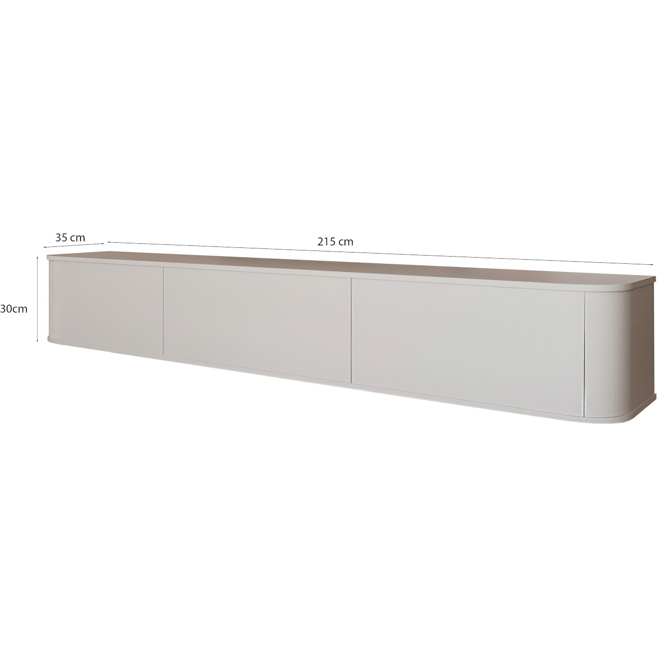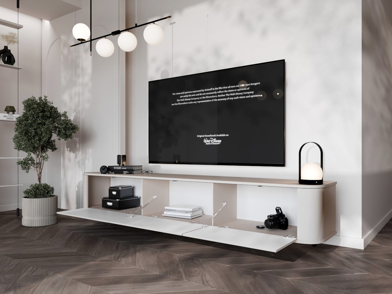 Komoda RTV wisząca AZELIO 215 cm Kaszmir z zaokrąglonymi narożnikami i systemem PUSH-TO-OPEN