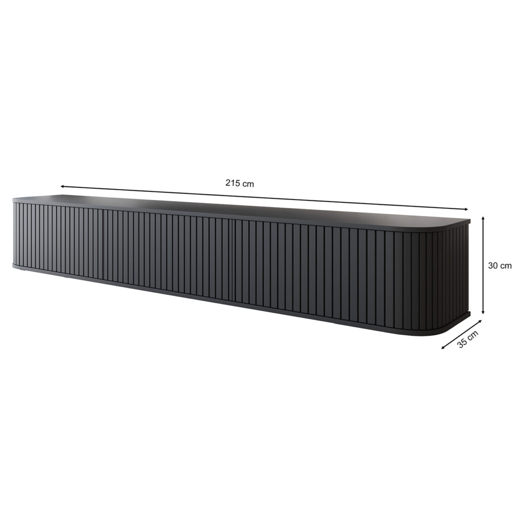 Komoda RTV wisząca ZYLIO 215 Czarny z ryflowanymi frontami to mebel, który nada Twojemu wnętrzu nowoczesnego wyrazu i designerskiego szyku.