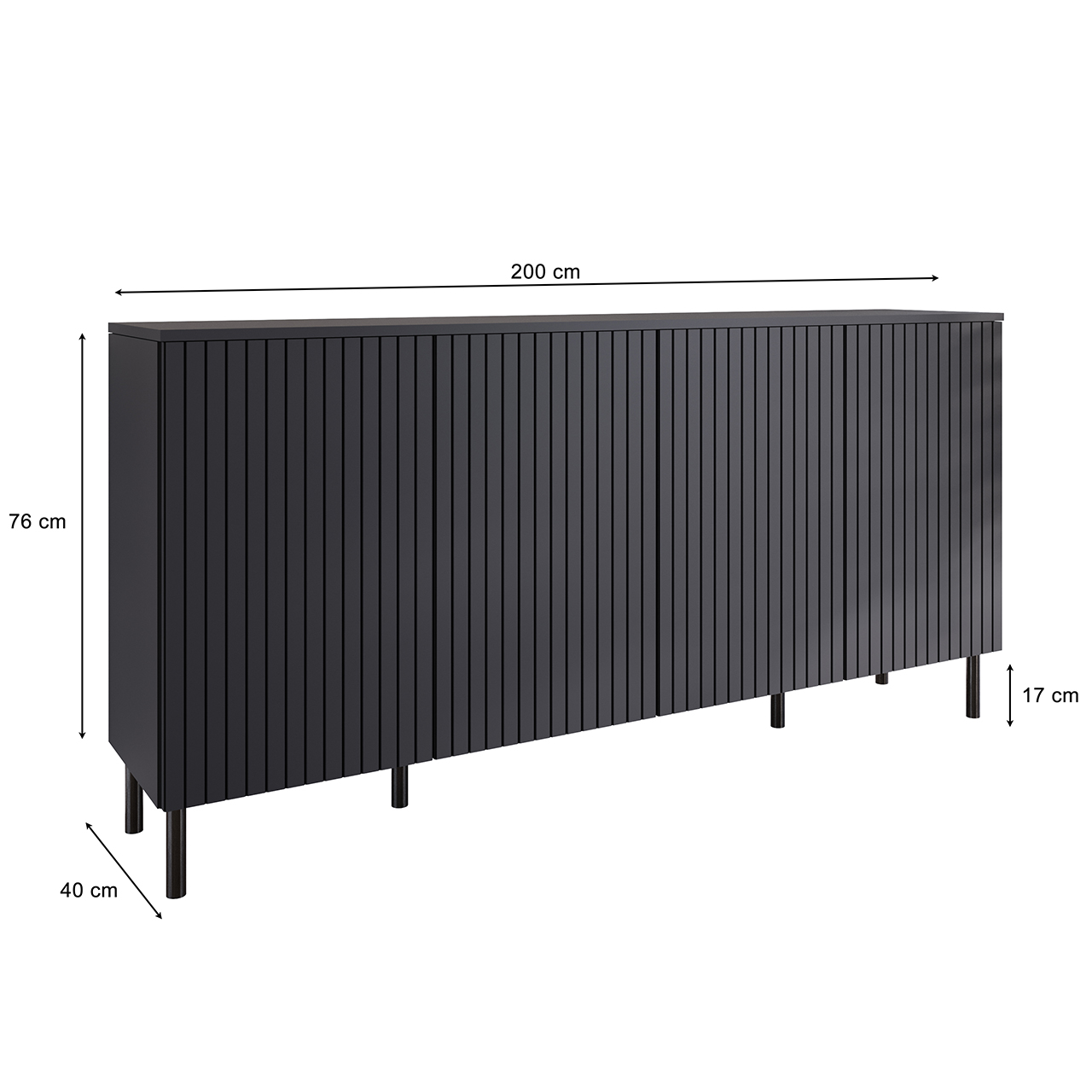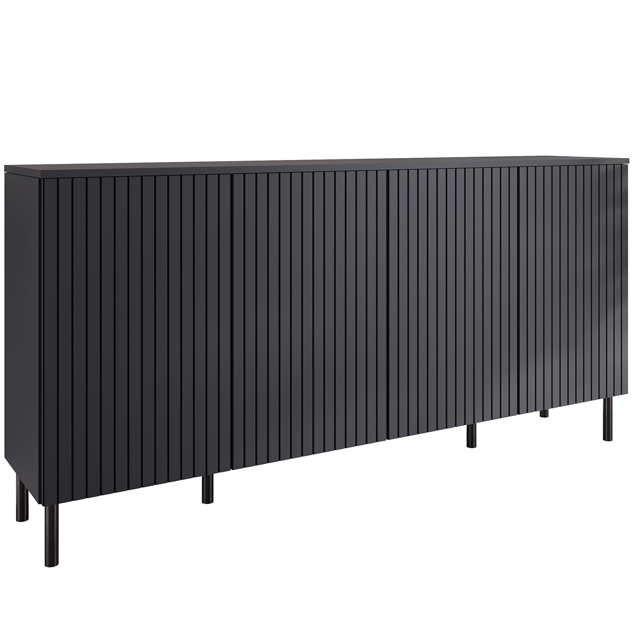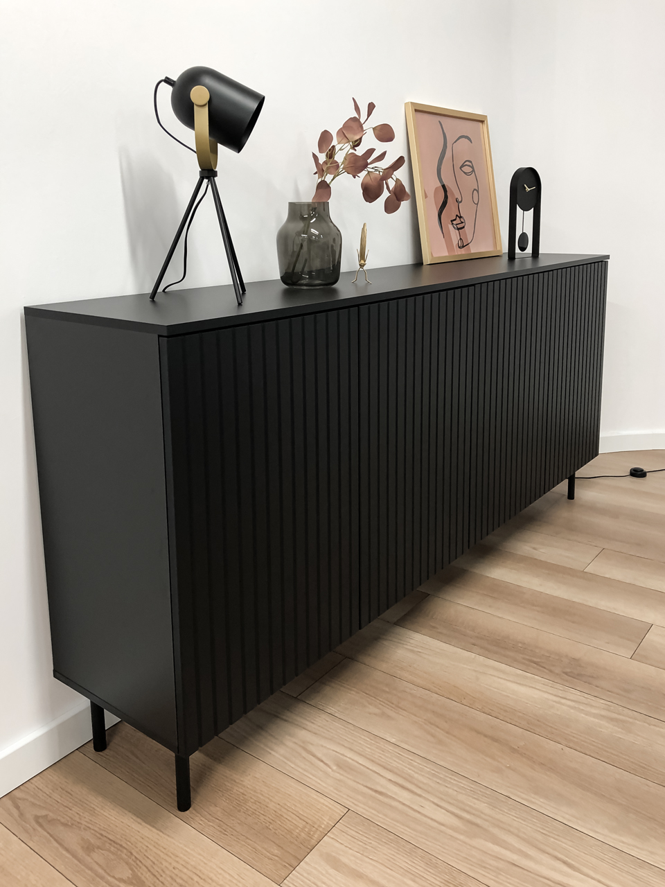 Komoda ryflowana czarna XEYLO 4D – elegancja, minimalizm i funkcjonalność w jednym