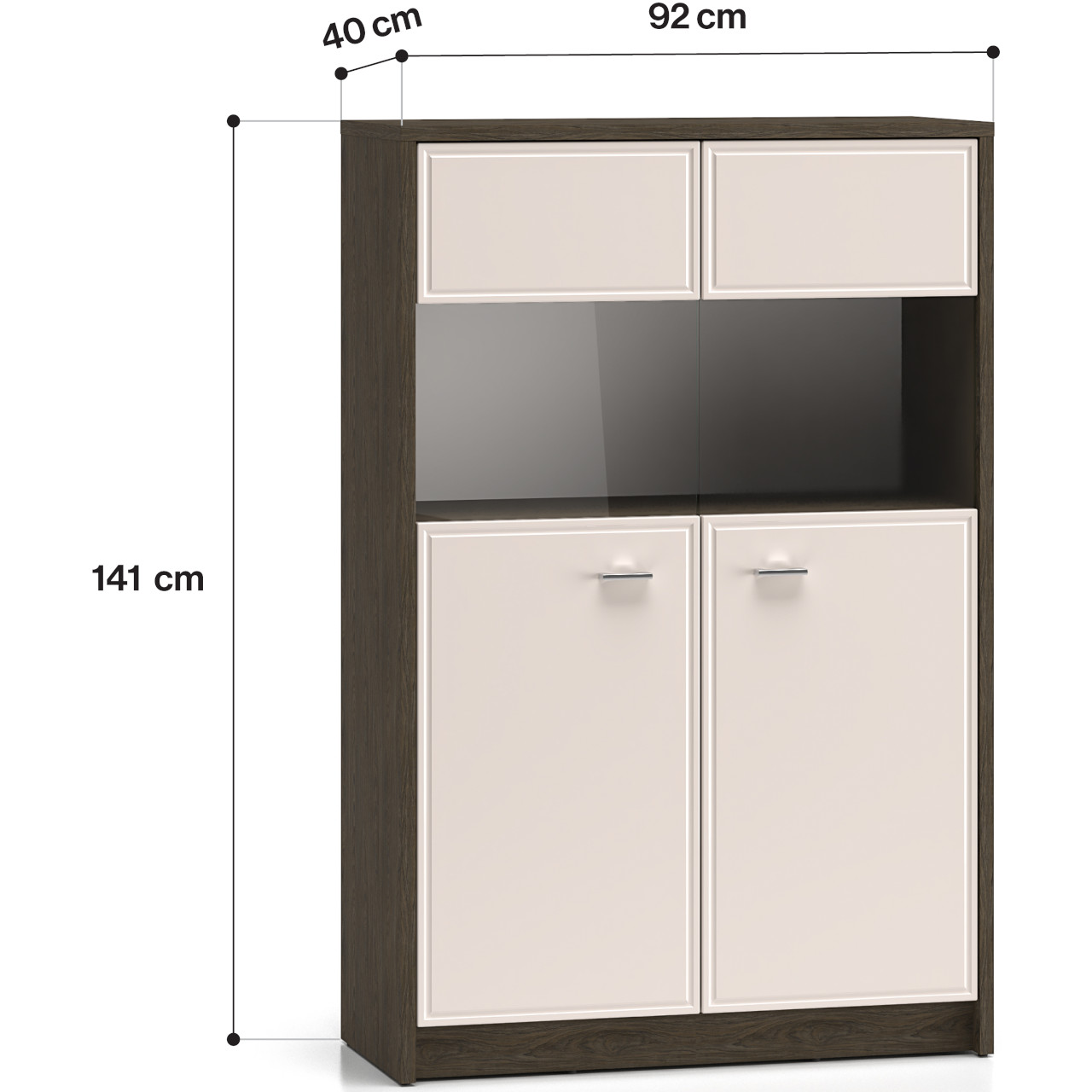 Elegancka i kompaktowa, z przeszkloną częścią idealną do ekspozycji dekoracji, porcelany czy książek. Możliwość doboru oświetlenia LED (nie jest wliczone w cenę) pozwala stworzyć wieczorem nastrojowe podświetlenie i podkreślić wybrane elementy wnętrza.