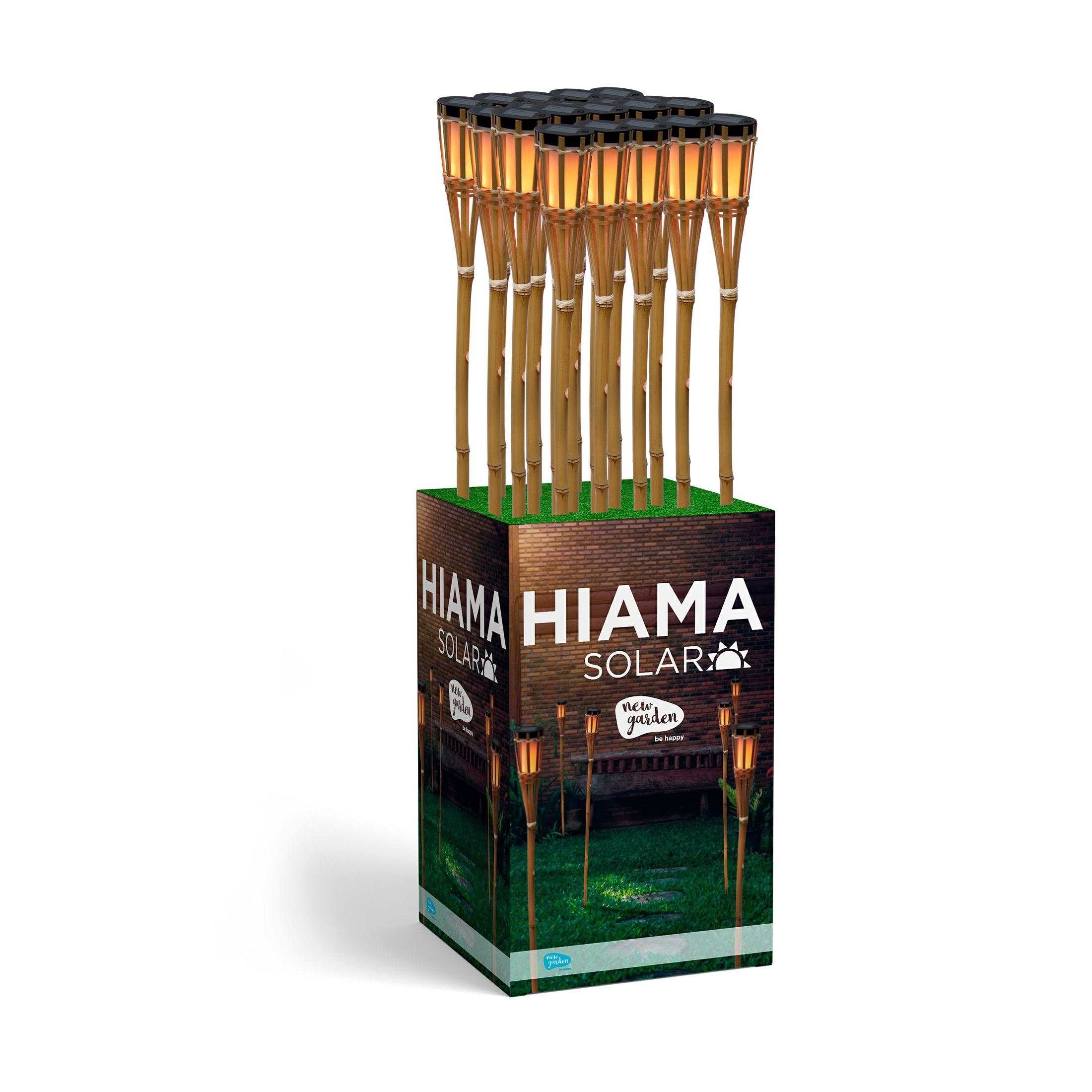 NEW GARDEN lampa ogrodowa HIAMA SOLAR z efektem płomienia. Jest wykonana ręcznie z naturalnego bambusa. Posiada moduł LED z panelem słonecznym na górze do ładowania. Umieszczając ją w ciągach komunikacyjnych, przy basenie, a nawet w donicy, wszechstronność tego słonecznego oświetelnia jest nieograniczona. Dzięki czujnikowi zmierzchu można zapomnieć o jej włączaniu lub wyłączaniu, ponieważ włączy się automatycznie, gdy wykryje przyciemnienie słońca. Zdumiewająco realistyczny efekt płomienia. Źródło światła: Bateria 2×1800 mA + ładowanie słoneczne Barwa światła: 1700K + efekt płomienia Kąt świecenia: 180° Moc maksymalna: 0,5 W Ilość lumenów: 25 lm Czas ładowania: 4 – 6 h Czas pracy baterii : do 16 h Klasa ochrony IP: 44 Trwałość: > 25000 h Waga netto 1 szt.: 24 x 0,19 kg Wymiary opakowania: 122 cm x 58 cm x 19 cm *Możliwość zakupu wyłącznie całego opakowania, które zawiera 24szt.