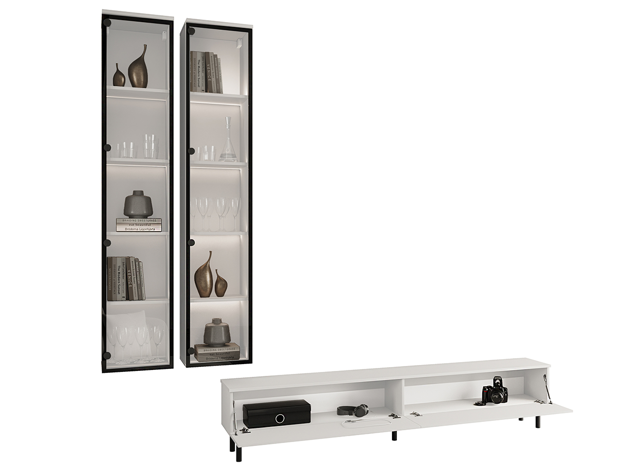 Meblościanka FIGO 3 biały to zestaw składający się z trzech nowoczesnych elementów, które razem tworzą elegancką, spójną i funkcjonalną aranżację do salonu.
