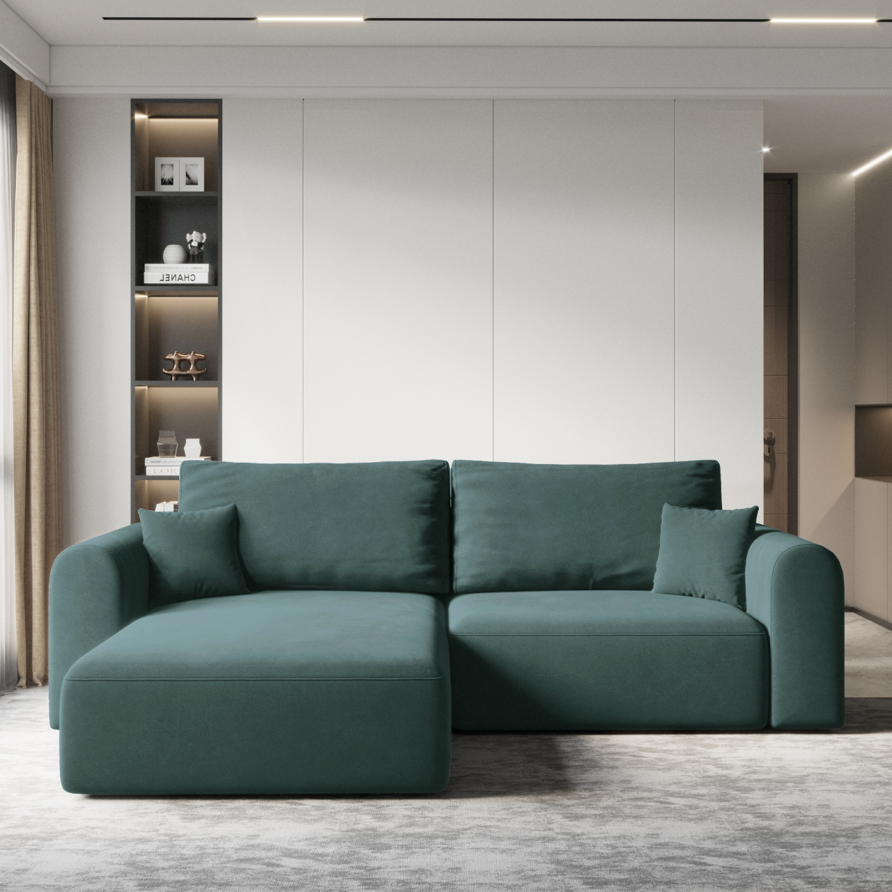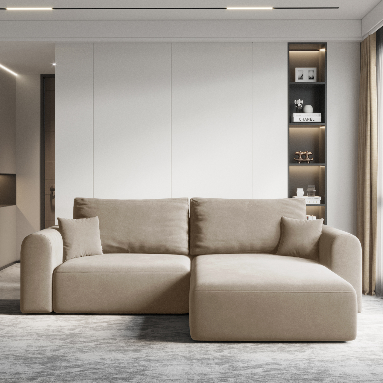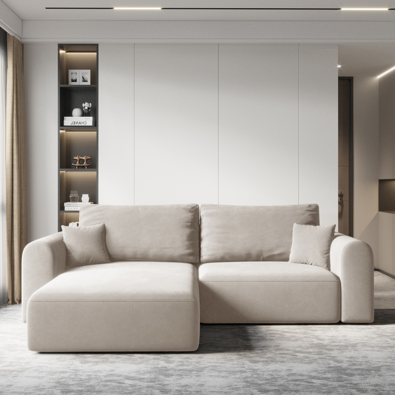- ✅ Nowoczesny narożnik z funkcją spania – idealny do salonu, pokoju dziennego lub gościnnego.