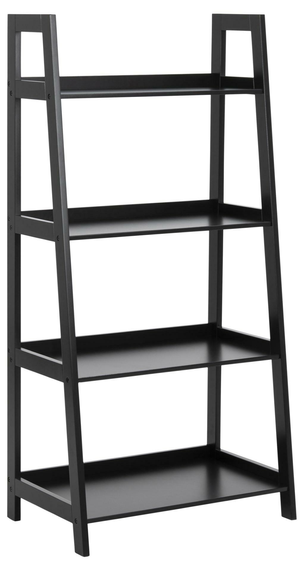 Regał Wally został zrobiony z drewna polakierowanego na czarno. Regał składa się z czterech półek, które są głębsze u dołu oraz coraz płytsze na górze. Efektowne połączenie bocznych nóg regału dodaje mu ponadczasowego wyglądu. Waga: 12 kg. Wymiary kartonu: 46cm x 138cm x 10cm