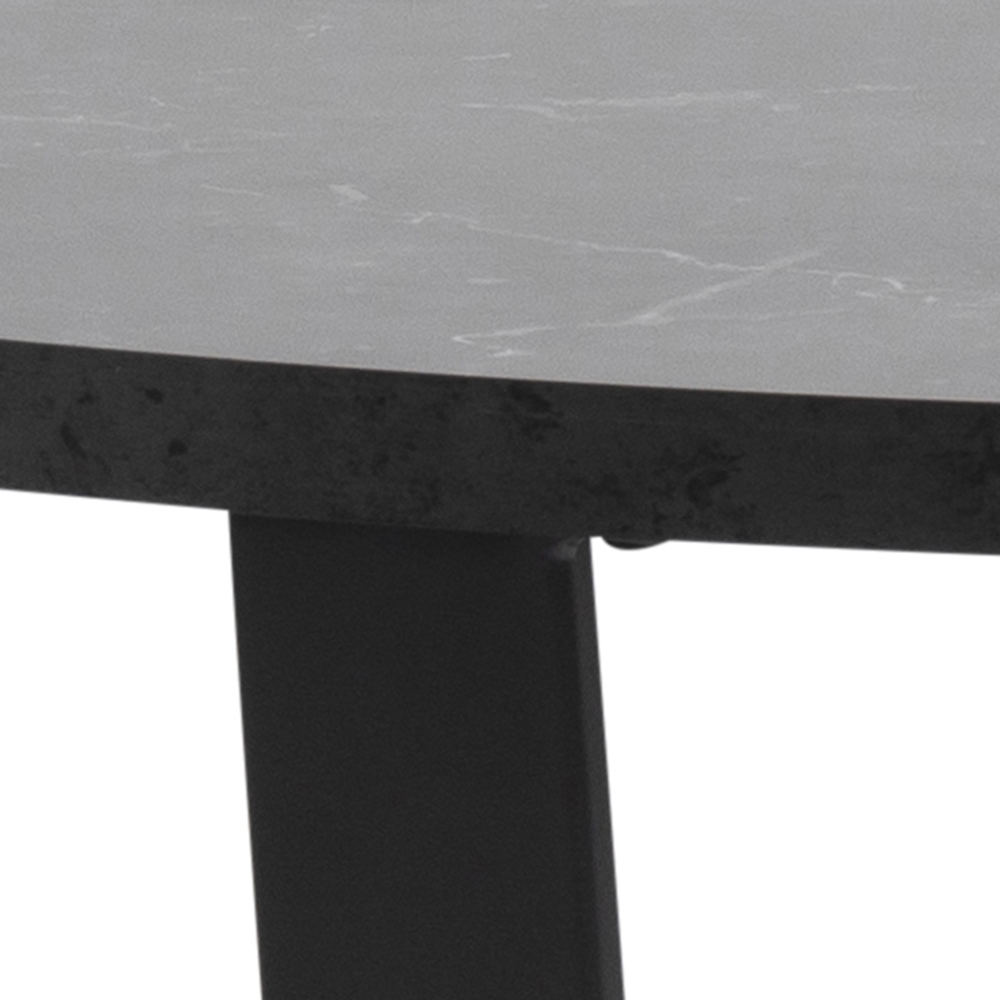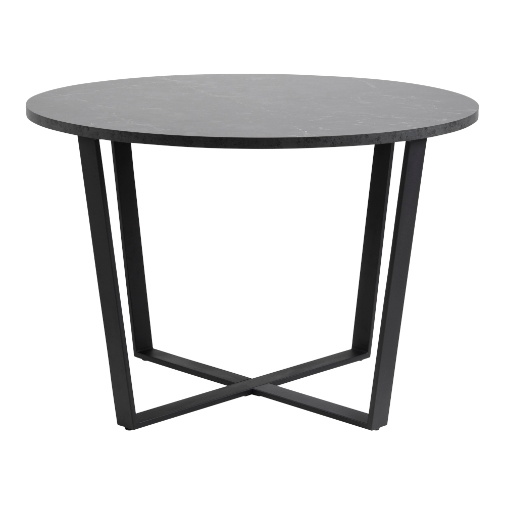 Stół Amble został zrobiony z płyty MDF ozdobionej okleiną imitującą marmur oraz z czarnejj pomalowanej proszkowo metalowej podstawy. Stół wpisuje się w styl glamour. Okrągły blat stołu idealnie wpisuje się w geometryczną podstawę. Nogi stołu przypominają zwężające się płozy, które krzyżują się pośrodku. Waga: 25 kg. Wymiary kartonu: 13cm x 121cm x 118cm