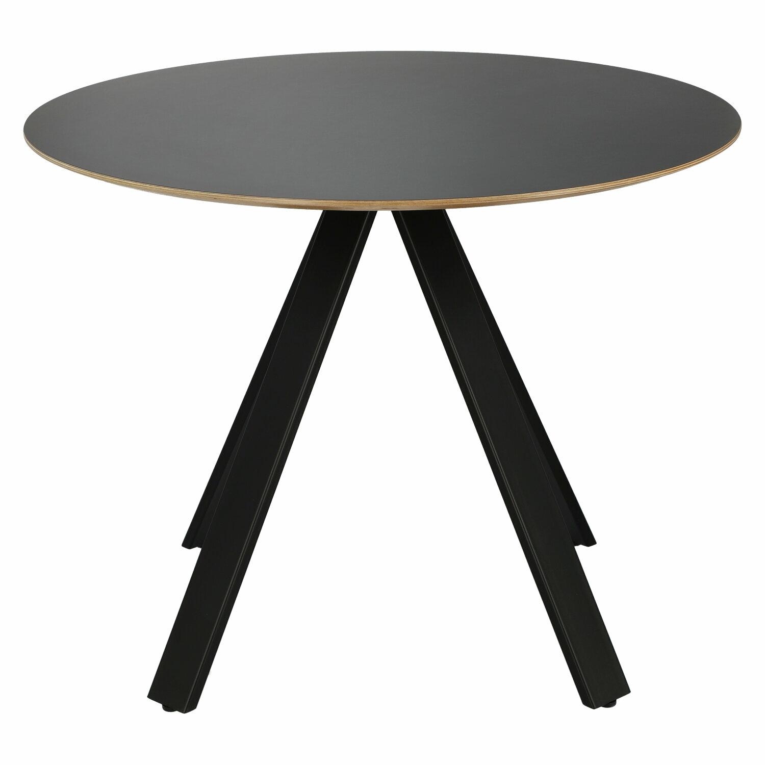 Blat stołu Mezzanotte wykonano ze sklejki liściastej, która wykazuje się o wiele większą odpornością na zginanie, ściskanie i wyginanie niż inne drewnopochodne materiały. Dodatkowo sklejka od góry została pokryta czarnym laminatem, który komponuje się z czarną podstawą stołu. Sklejka to również produkt ekologiczny, w całości wykonany z drewna. Stół Mezzanotte wyposażony został w cztery eleganckie nogi wychodzące z jednego punktu pod blatem. Takie ułożenie elementów nie tylko zapewniło całości wyjątkową stabilność, ale także zadecydowało o jej oryginalnym wyglądzie. Podtrzymywany przez nóżki blat zachwyca swoim idealnie okrągłym kształtem oraz nietypowym wykończeniem brzegów. Brzegi w naturalnym kolorze zostały lekko ścięte od spodu, tworząc niebanalne wykończenie.