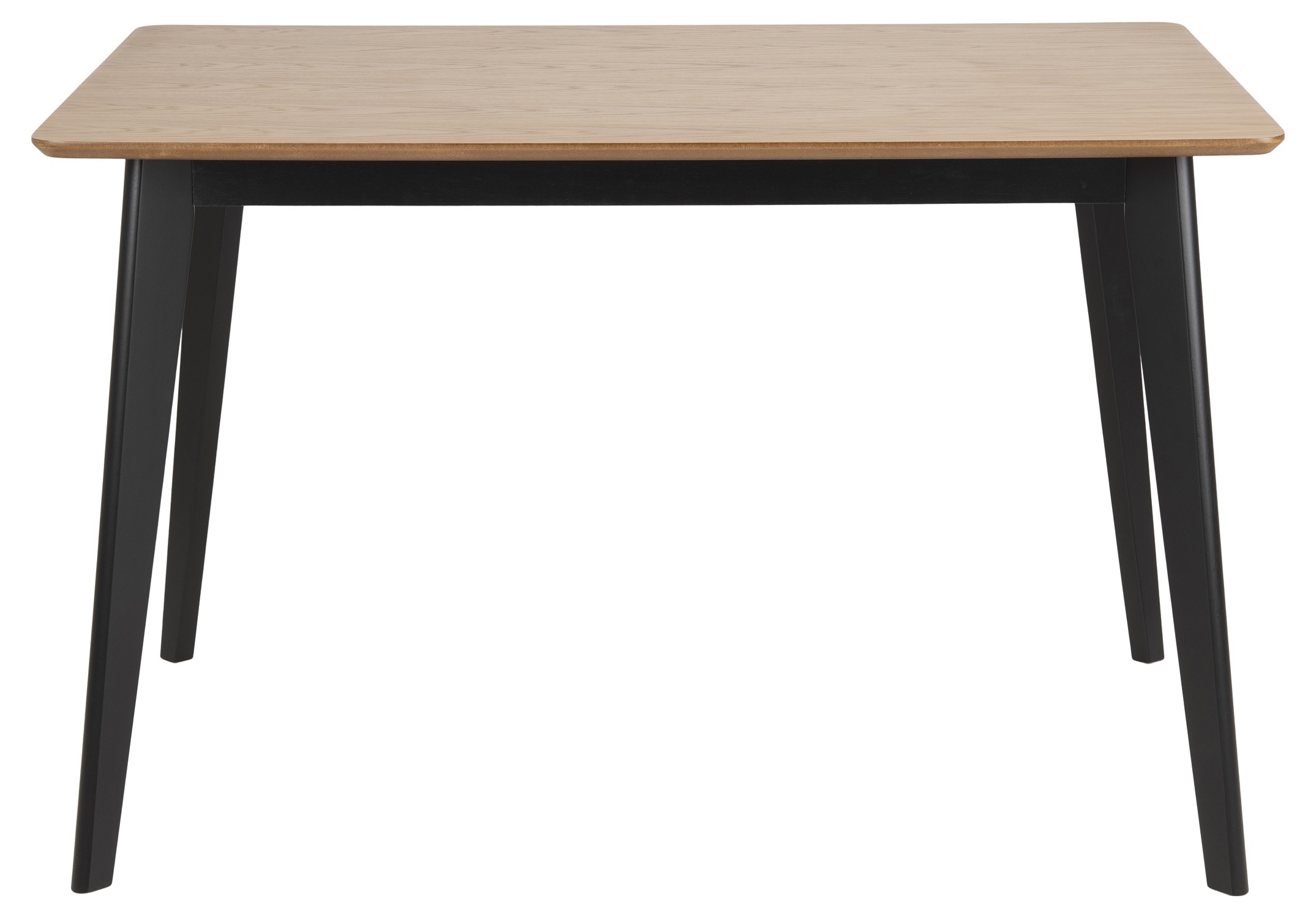 Stół Roxby z prostokątnym blatem to przykład minimalistycznego, nowoczesnego wzornictwa. Blat w okleinie dębowej spoczywa na czterech nogach z drewna kauczukowego malowanych na kolor czarny. Stół pasuje idealnie do modernistycznych, industrialnych jadalni. Pięknie komponuje się z krzesłami z tej samej serii. Ilość kartonów: 1 Wymiary kartonów: 125,5×85,5×11,5cm Waga kartonów: 24kg