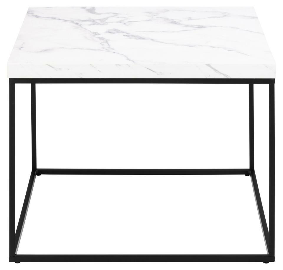 Pierwszą rzeczą, którą prawdopodobnie zauważysz w tym stoliku kawowym, jest wyrazisty gruby blat w okleine imitującej kamień. Jest on gruby i ozdobiony wzorem białego marmuru, który nadaje stolikowi odważny wygląd. Jeśli więc szukasz akcentu, który powinien wyróżniać się w przestrzeni, to jest właśnie ten. Główne cechy stolika: Nowoczesny kwadratowy stolik kawowy Gruby blat o wyglądzie białego marmuru dla odważnego wyglądu Smukła stalowa podstawa z malowanym proszkowo wykończeniem Zaprojektowany przez projektantkę Christinę Aagaard Posiada Certyfikat FSC Grubość blatu 3cm Wyposażony w filcowe podkładki Waga 7kg Max. obciążenie 20kg Wymiary kartonu: 70x65x7cm