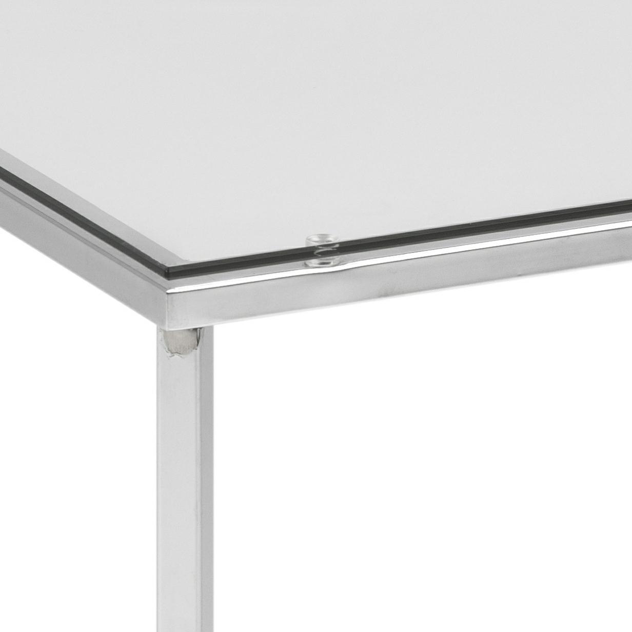 Stolik kwadratowy Cross wykonany zostal z chromowanego metalu oraz transparentnego szkła hartowanego, stanowiącego taflę blatu. Stolik doskonale odnajdzie się w industrialnych, loftowych oraz nowoczesnych wnętrzach wnosząć elegancję i styl. Stolik wymaga montażu, maksymalne obciążenie wynosi 30kg, nie nadaje się na zewnątrz. Sprawdzi się w przestrzeniach komercyjnych, biurowych, hotelowych oraz domowych.