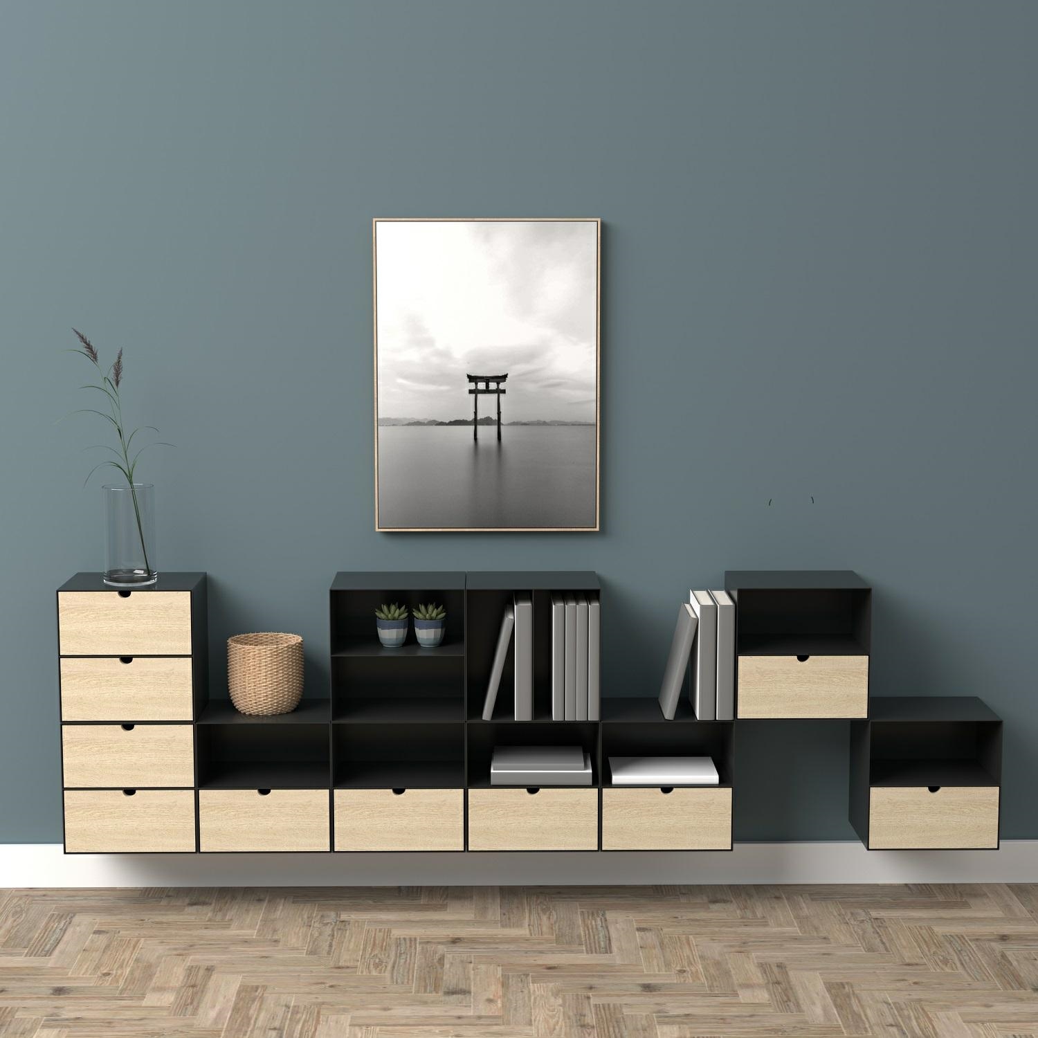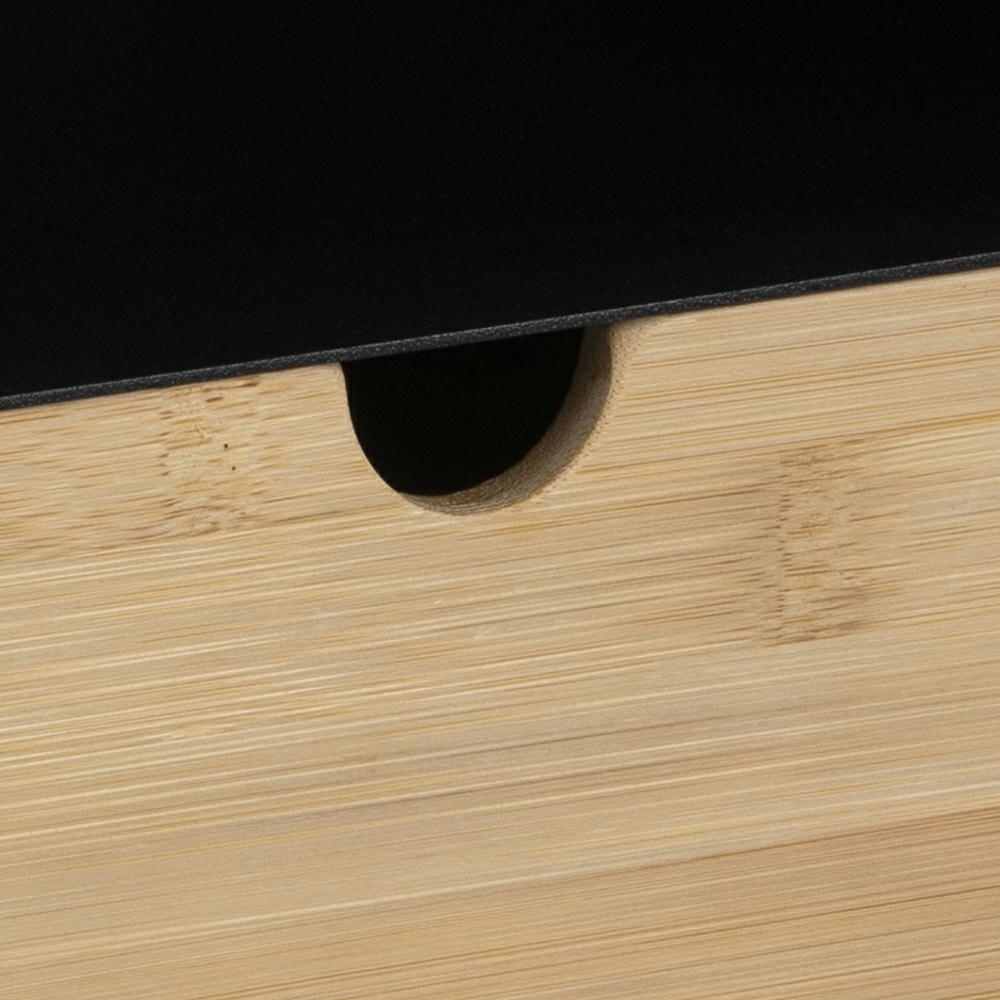 Szafka nocna Joliet to minimalistyczny, nowoczesny mebel dla miłośników dobrego stylu. Korpus wykonany jest z malowanego proszkowo metalu, zaś szuflada z wytrzymałego bambusa. Szafka zapewnia możliwość personalizacji – szufladę można umieścić na górze lub na dole. W połowie wysokości szafki znajduje się metalowa półka. Wymiary: 30x25x30 cm Waga: 5,2kg