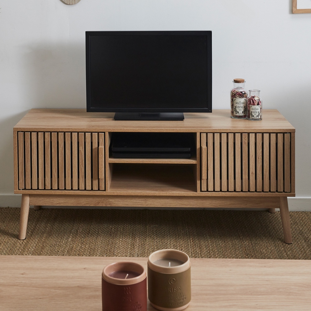 Pokochasz ten naturalnie wyglądający mebel. Szafka z drzwiami po obu stronach i 2 środkowymi półkami z otworami z otworami z tyłu na okablowanie odtwarzaczy DVD lub Okablowanie do odtwarzaczy DVD lub konsol do gier wideo. Konsole do gier wideo. Możliwość łączenia z innymi meblami Klaus. Wymaga montażu Wymiary kartonu: 124x12x45cm Waga: 20kg