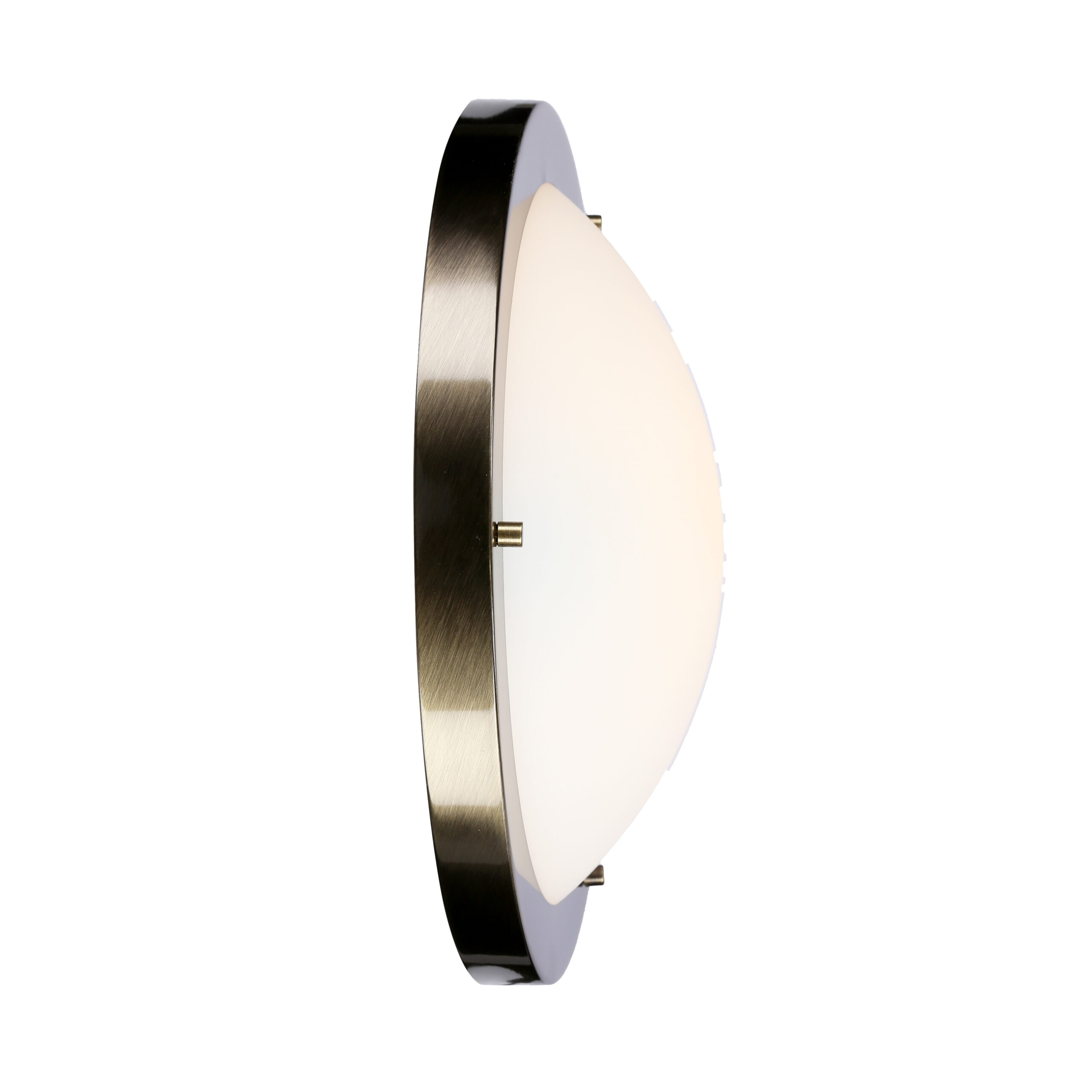 plafon bryzgoszczelny; eleganckie połączenie metalu i szkła; biały klosz gięty otoczony metalowym ringiem; idealny na przedpokój, do kuchni i łazienki; podwyższona szczelnośc IP44 pozwala na montaż w łazienkach w obszarach II strefy użytkowania, czyli w bezpośredniej bliskości wanień i pryszniców; dostępny w czterech wersjach kolorystycznych podstaw (patyna, satyna, miedziany i biały) i trzech rozmiarach