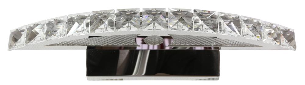 stylowa kombinacja chromu z transparentnymi kryształkami z akrylu; światło imponująco rozproszone przez kryształki odbija się w lustrzanej powierzchni chromowej podstawy; brak możliwości regulacji kąta nachylenia; idealna propozycja nad lustro