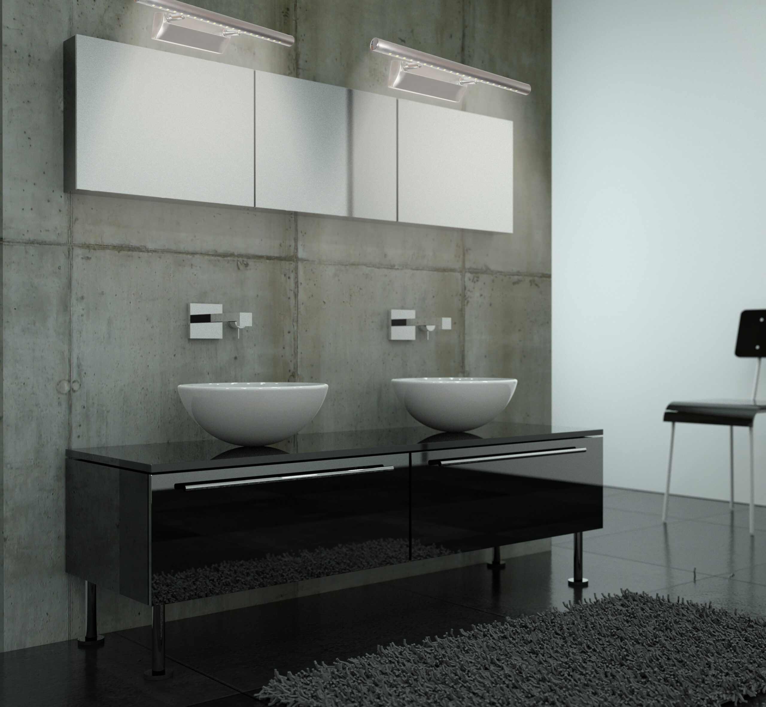 nowoczesny kinkiet z ledowym źródłem światła do podświetlania elementów dekoracyjnych np. obrazów, zdjęć lub luster; regulowana główka zapewni optymalne doświetlenie; prosta konstrukcja bez zbędnych dekoracji zapewnia uniwersalność w zastosowaniu