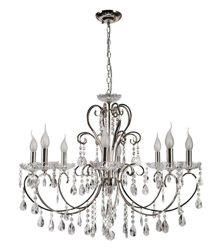 Materiał: podstawa stalowa, łańcuch, elementy ozdobne szklane, bez kloszy