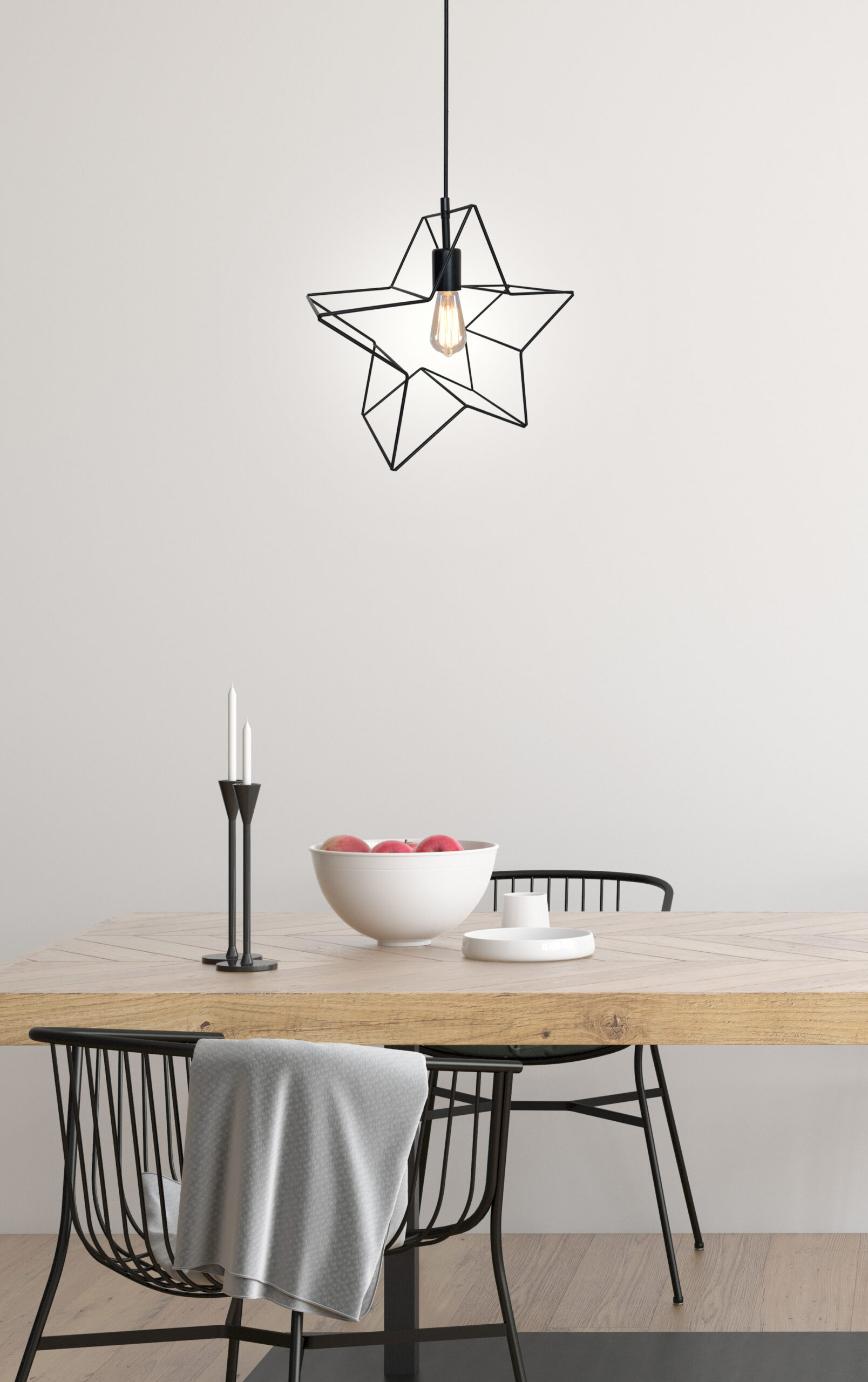 metalowy, ostrożny w stylistyce z zachowaniem oryginalności; doskonały do nowoczesnego wnętrza, również juniora; przejrzystość konstrukcji zapewnia maksymalne wykorzystanie mocy źródła światła; regulowana długość zwisu;