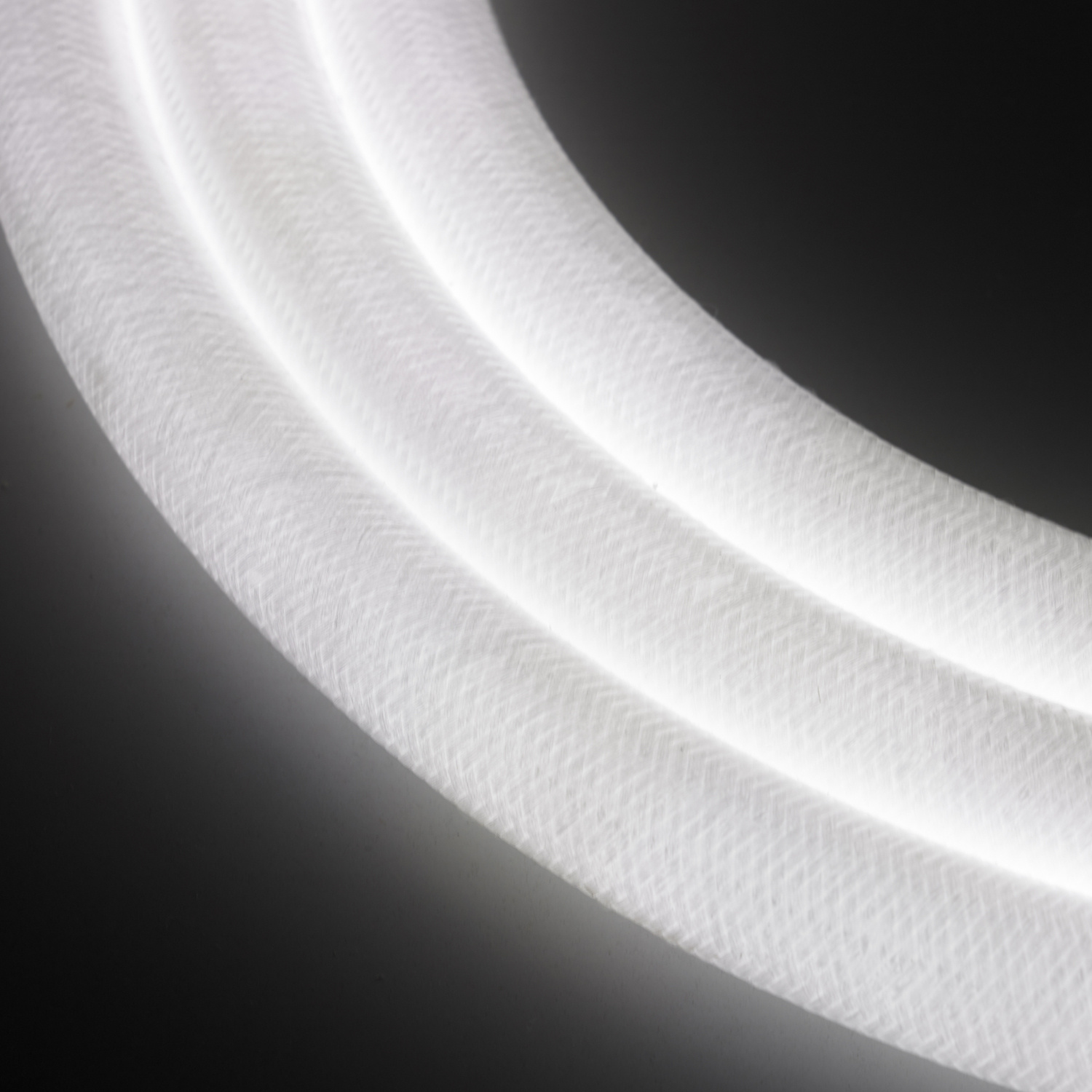 Przez metalową listwę przewieszono tekstylną tkaninę skrywającą ledowe źródło światła.