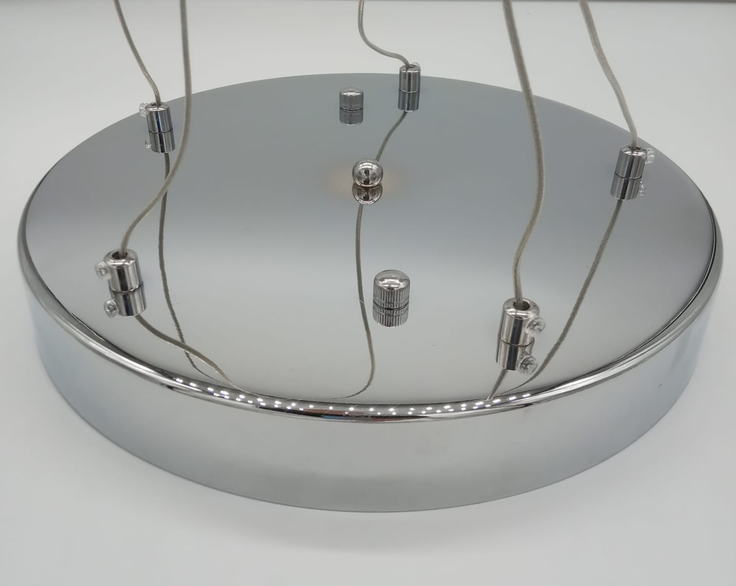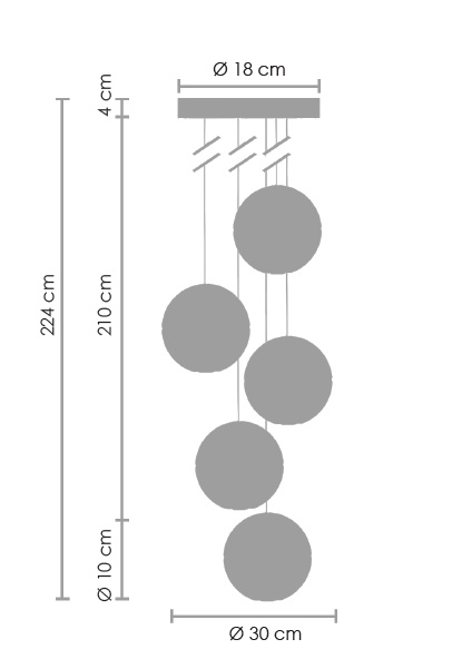 Rozeta, na której zawieszone są kule, została wykonana w eleganckim chromowanym wykończeniu. To nie tylko element konstrukcyjny, ale także dodatkowy akcent designerski.