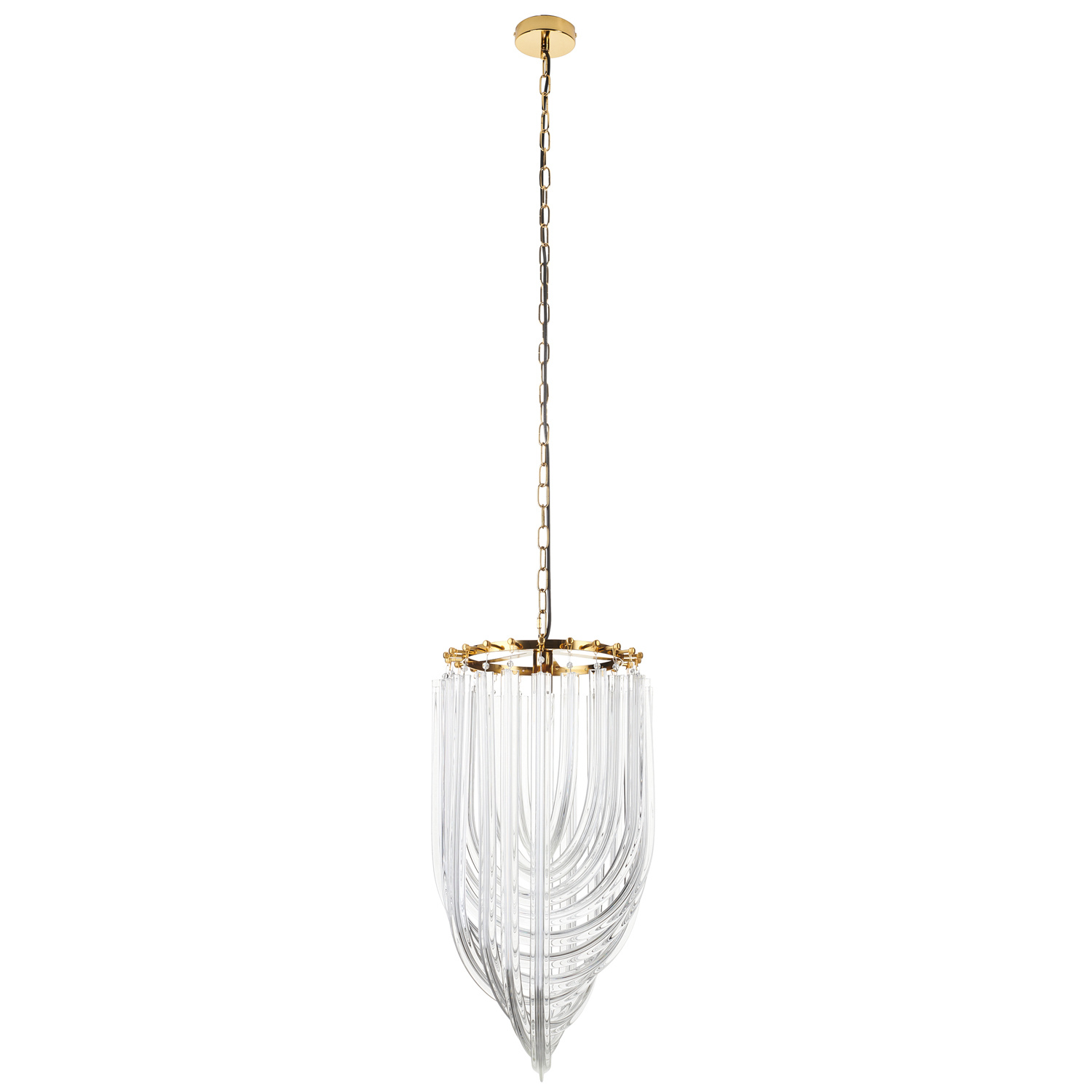 Całość została podwieszona na stabilnym metalowym łańcuchu, który dodaje lampie solidności i wyrafinowanego wyglądu. Lampa WAVE została wykończona w kolorze polerowanego złota, co nadaje jej ekskluzywnego charakteru.