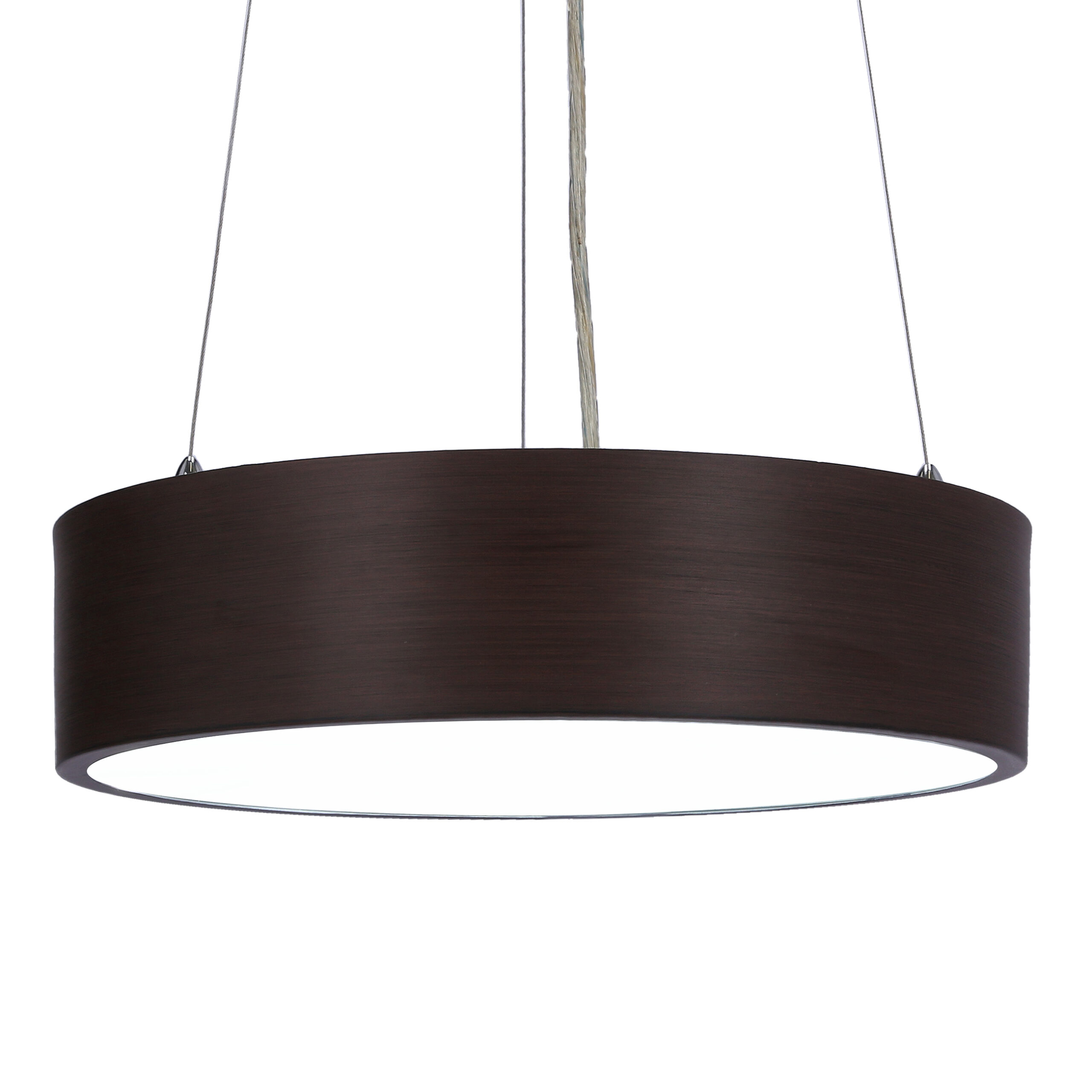 metalowy ring zwisu w kolorze wenge, w połączeniu z nowoczesnym źródłem światła LED rozjaśni z klasą każde wnętrze; regulowana wysokość zawieszenia zwiększa jego funkcjonalność