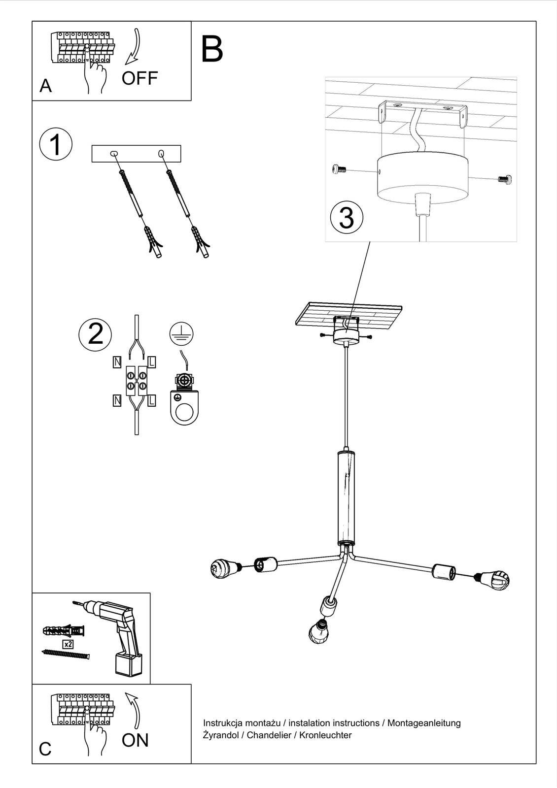 -55% Najniższa cena ( 27 października 2025 ): 478.00 złŹródło światła: E27, 3x60W, 3x15W LED, 50-60Hz, ~220-230V, IP20, klasa ochronności I
