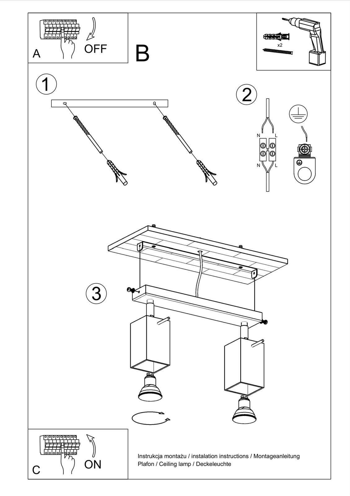 -55% Najniższa cena ( 27 października 2025 ): 338.00 złŹródło światła: GU10, 2x40W, 2x12W LED, 50-60Hz, ~220-230V, IP20, klasa ochronności I