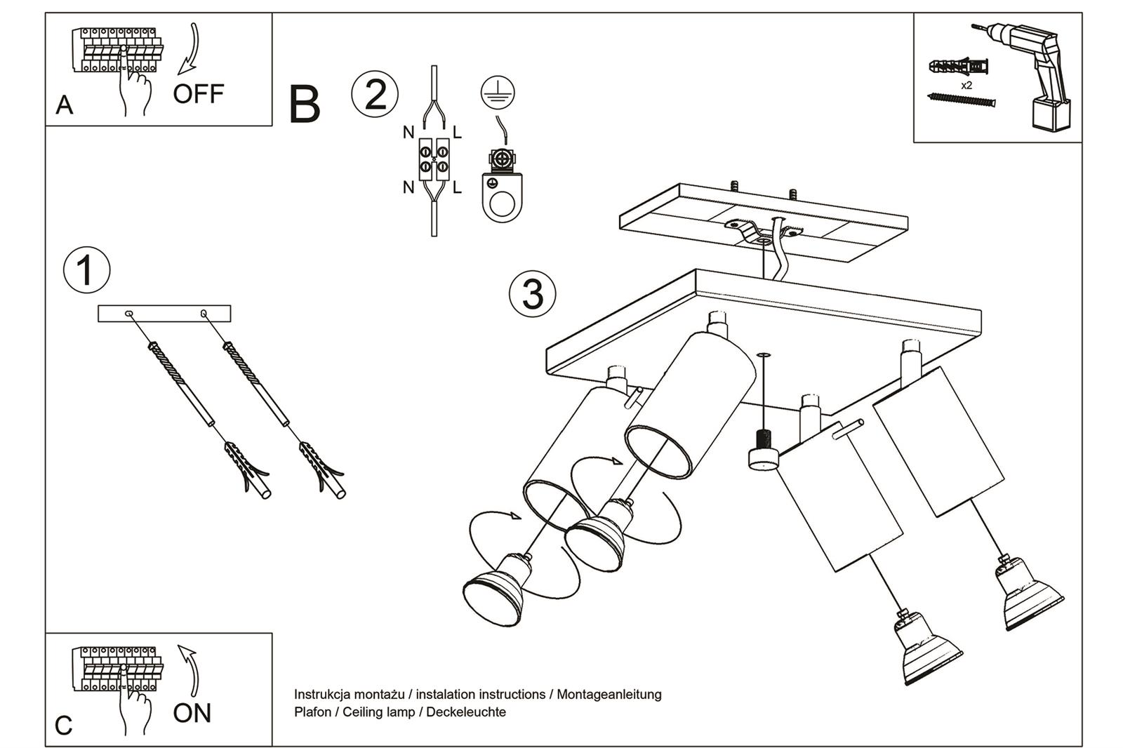 -55% Najniższa cena ( 27 października 2025 ): 578.00 złŹródło światła: GU10, 4x40W, 4x12W LED, 50-60Hz, ~220-230V, IP20, klasa ochronności I