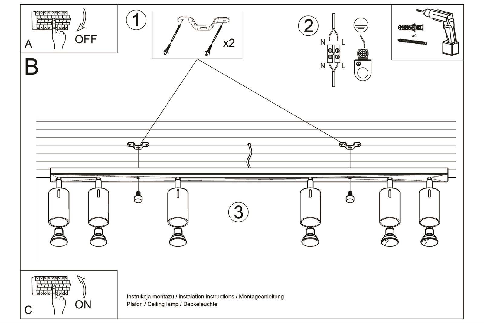 -55% Najniższa cena ( 27 października 2025 ): 898.00 złŹródło światła: GU10, 6x40W, 6x12W LED, 50-60Hz, ~220-230V, IP20, klasa ochronności I
