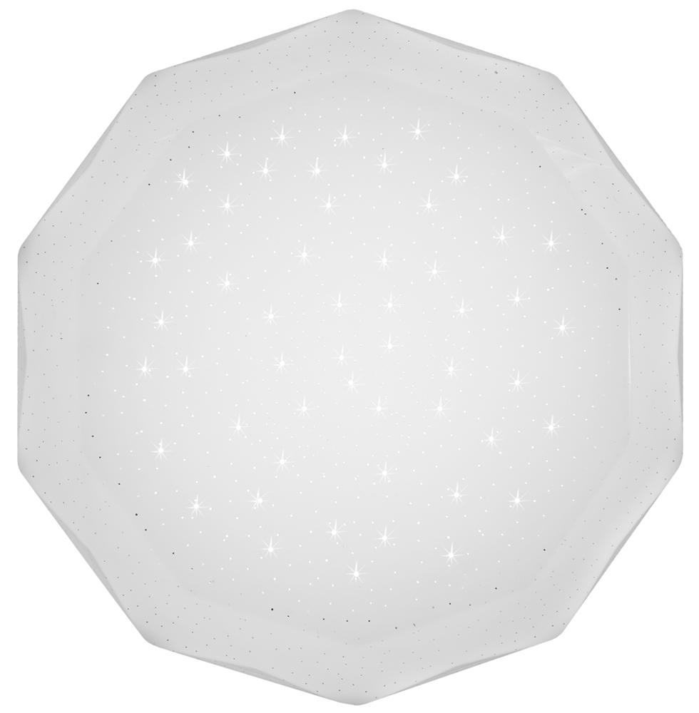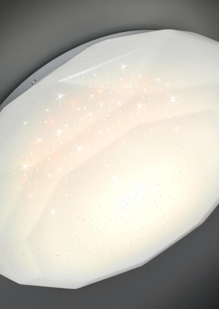 akrylowy biały klosz o niespotykanej przestrzennej budowie z widocznym po zaświeceniu efekcie gwiezdnego nieba + metalowa podstawa; wyposażony w wymienne moduły LED