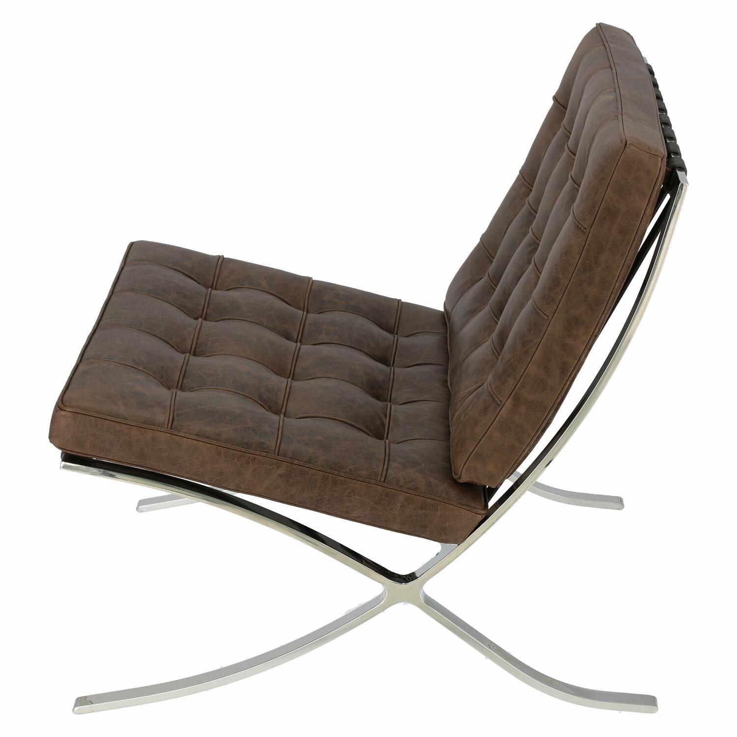 Fotel BA1 jestinspirowany projektem fotela Barcelona. Barcelona to zaprojektowany w 1929 roku fotel, który powstał na zamówienie i stanął w niemieckim pawilonie na wystawie w Barcelonie.,Charakterystycznie powyginana w kształt litery „X” chromowana podstawa oraz pikowana w kwadraty naturalna skóra to najbardziej charakterystyczne cechy tego fotela. Uzupełnieniem tego fotela jest Barcelona Ottoman i Barcelona,stolik.,Fotel wykonany całkowicie ze skóry naturalnej.