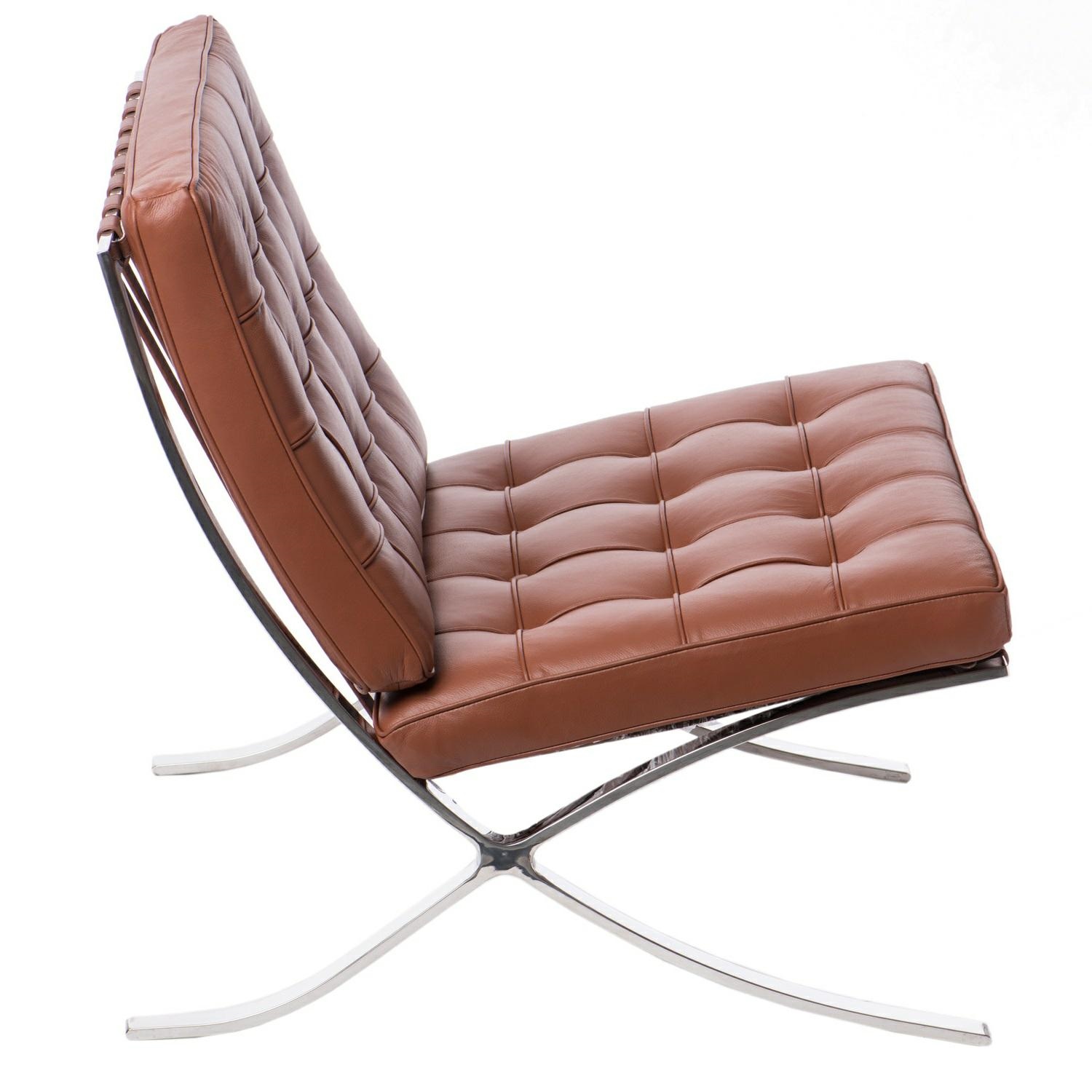 Fotel BA1 jestinspirowany projektem fotela Barcelona. Barcelona to zaprojektowany w 1929 roku fotel, który powstał na zamówienie i stanął w niemieckim pawilonie na wystawie w Barcelonie.,Charakterystycznie powyginana w kształt litery „X” chromowana podstawa oraz pikowana w kwadraty naturalna skóra to najbardziej charakterystyczne cechy tego fotela. Uzupełnieniem tego fotela jest Barcelona Ottoman i Barcelona,stolik.,Fotel wykonany całkowicie ze skóry naturalnej.