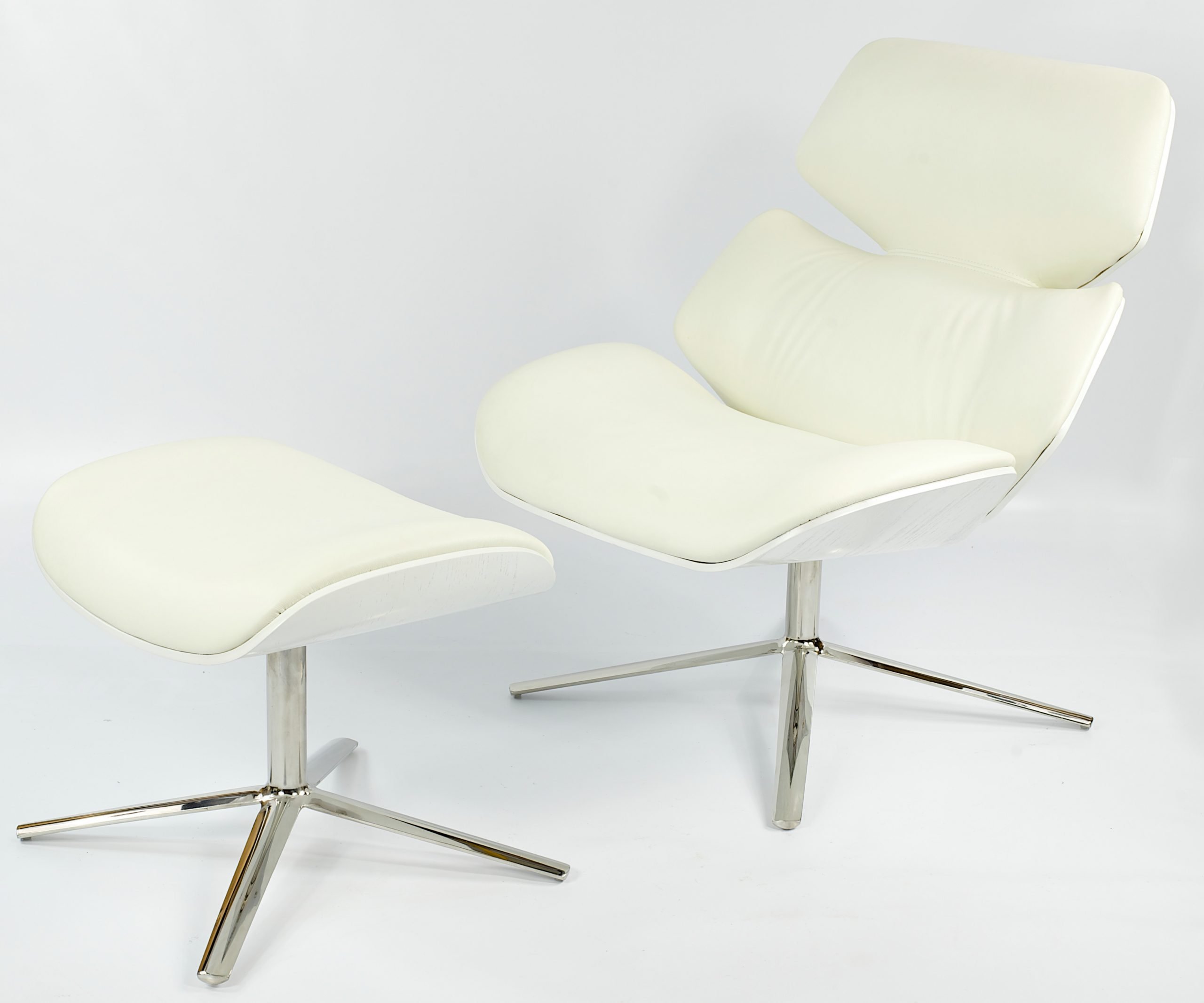 Fotel obrotowy Bari z podnóżkiem Biały – skórzany fotel wypoczynkowy