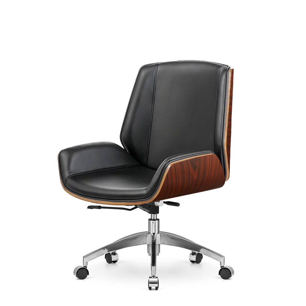 Napisz pierwszą opinię o „Fotel biurowy Timo Low Czarna skóra Brazylijski palisander Skóra ekologiczna Chromowana”