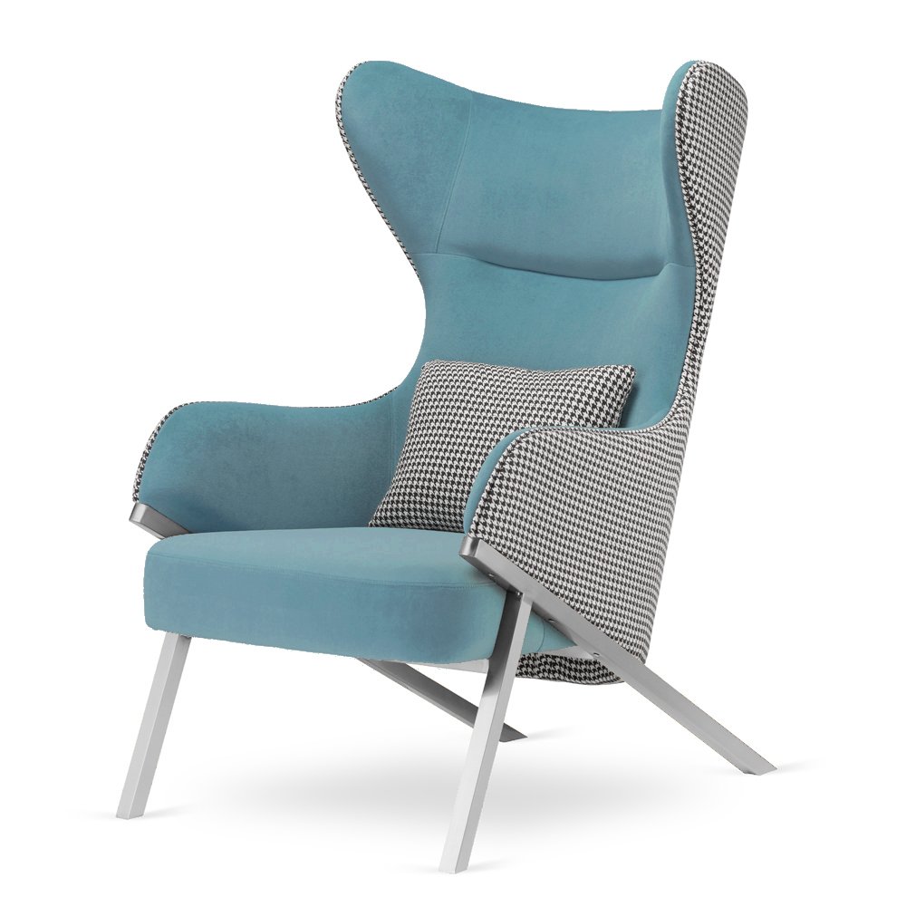 Niebieski odcień fotela Classy to kolor, który od dawna kojarzy się z harmonią, spokojem i wyrafinowanym stylem. W połączeniu z pepitką i srebrną podstawą staje się centralnym punktem salonu, przyciągając wzrok i nadając wnętrzu luksusowy charakter.