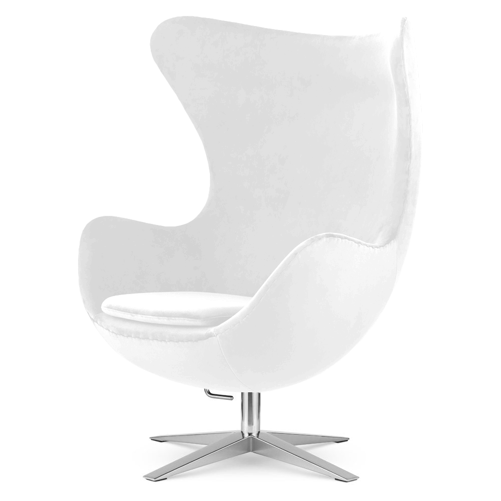 Fotel Egg Treviso to połączenie luksusowej estetyki, perfekcyjnej ergonomii i charakterystycznej formy, która nigdy nie wychodzi z mody. Jego biała tapicerka z aksamitnego weluru Premium prezentuje się niezwykle elegancko i miękko, delikatnie odbijając światło. Welur otula fotel niczym miękka chmura, dając poczucie przytulności i wyjątkowego komfortu już od pierwszego dotyku. ✨