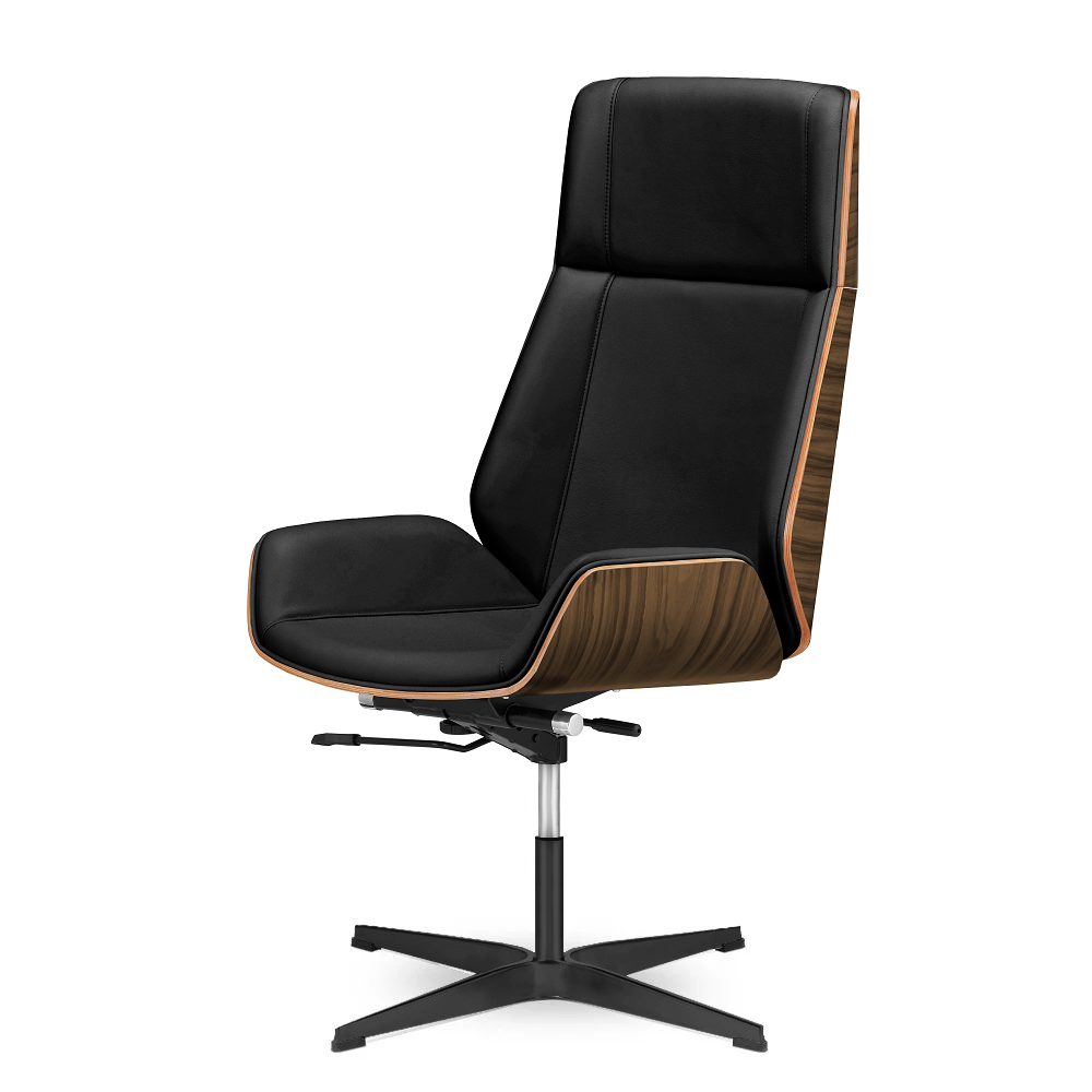 Fotel biurowy Timo High – Czarna skóra ekologiczna, Jasny Palisander, stała podstawa