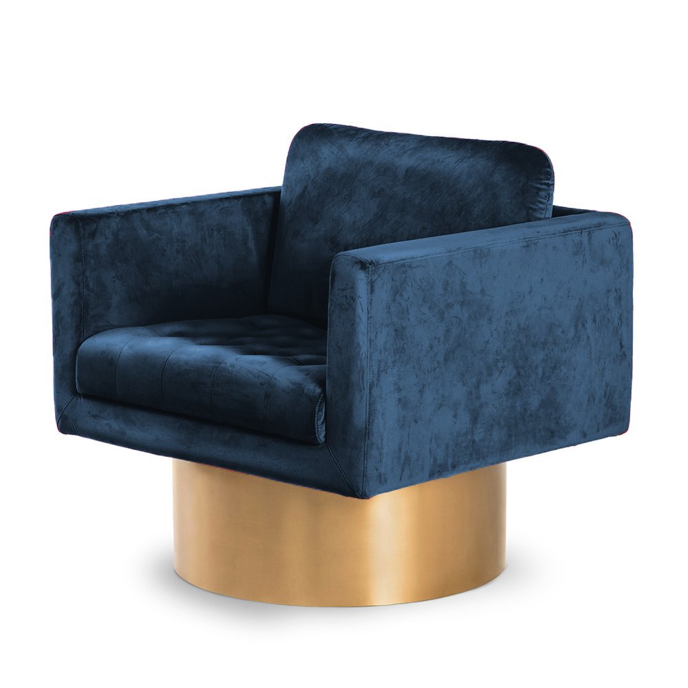 Fotel Glam velvet styl glamour nowoczesny do salonu złote dodatki pikowany Granatowy (5187-57)