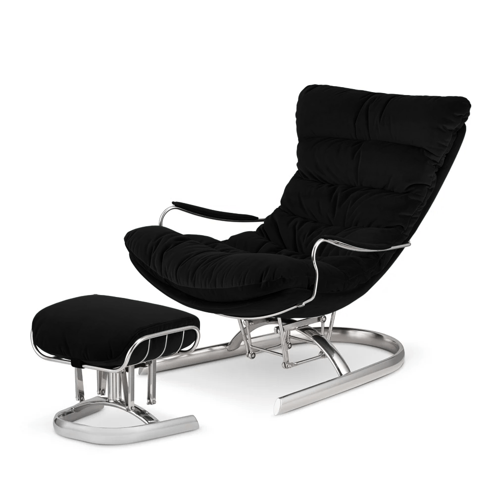 Nowoczesny fotel bujany Lidingo z podnóżkiem – luksusowy relaks w Twoim domu 🖤✨