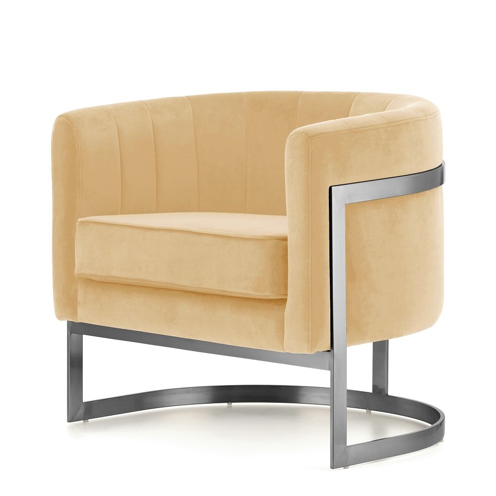 Fotel Madame styl glamour złoty welurowy okrągły Beżowy (SWAN-01) Srebrna