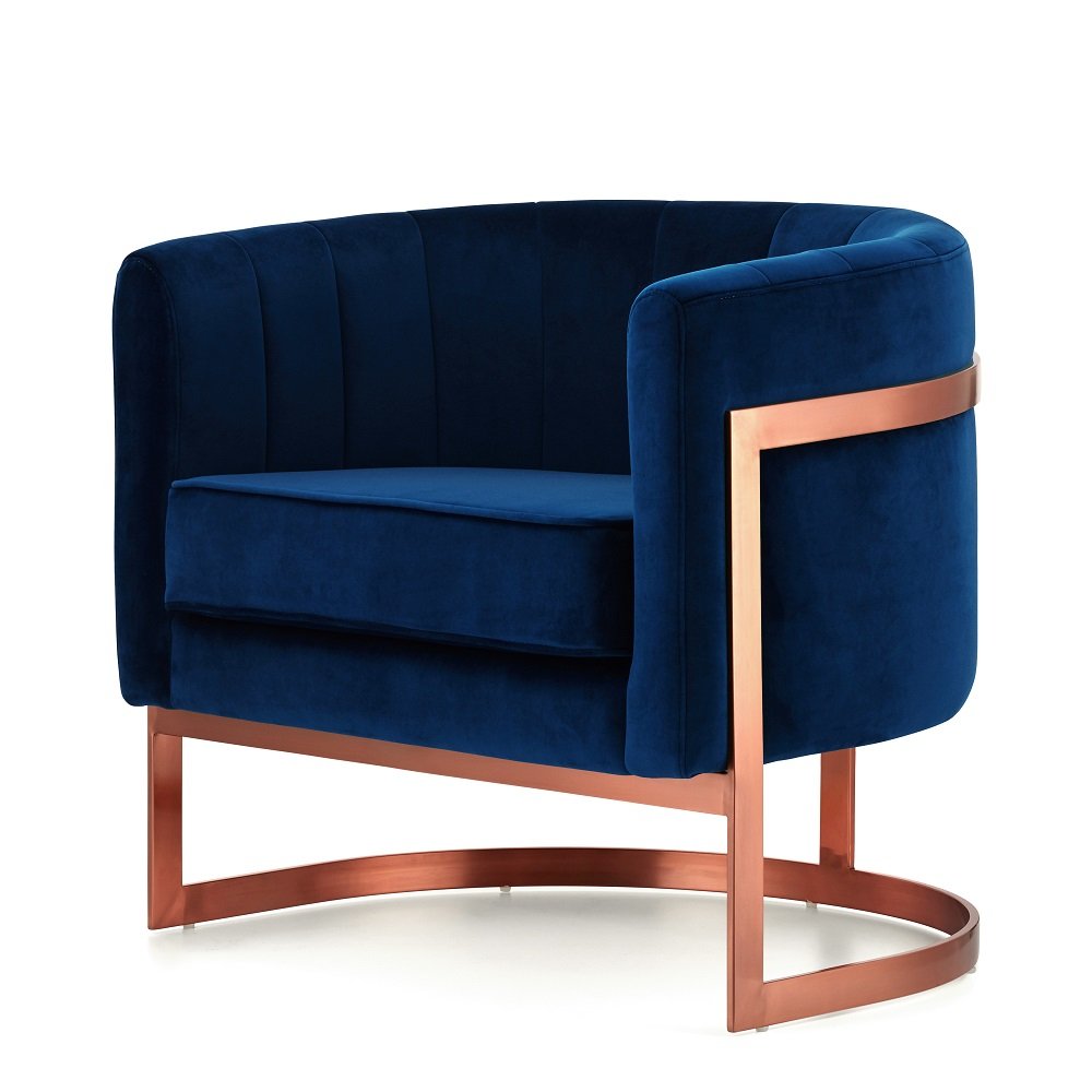 Fotel Madame Velvet Styl Glamour – Ciemnogranatowy (SWAN-18) Różowe Złoto ✨🛋️