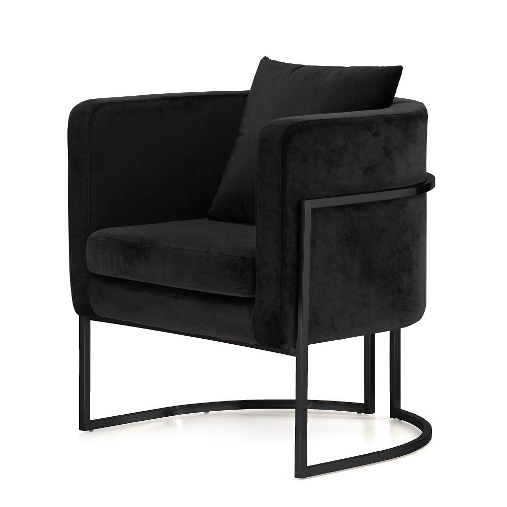 Czarny fotel Miriam Velvet może stać się centralnym punktem salonu, szczególnie w duecie przy stoliku kawowym z marmuru, szkła lub drewna.