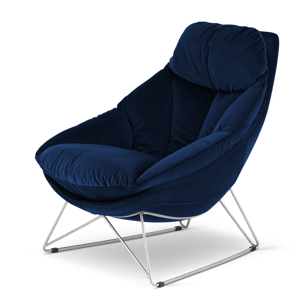 Fotel Sala XZ to hołd dla współczesnego minimalizmu połączonego z ponadczasową elegancją. Jego opływowa, lekko organiczna bryła i miękkie linie sprawiają, że mebel ten wygląda niezwykle stylowo i subtelnie zarazem. Ciemnogranatowa tkanina SWAN-18 dodaje mu głębi oraz szlachetności, a metalowa podstawa w formie smukłych, geometrycznych nóg nadaje lekkości całej konstrukcji.