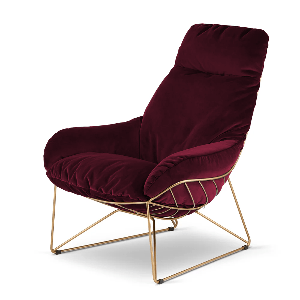 Fotel Skara XZ Bordowy wyróżnia się minimalistyczną, a zarazem luksusową formą. Jego obłe linie siedziska, oparcia i podłokietników tworzą spójną, harmonijną bryłę, która subtelnie otula użytkownika. To połączenie miękkości i wyrafinowanej geometrii sprawia, że fotel wydaje się lekki wizualnie, a jednocześnie jest niezwykle przytulny.