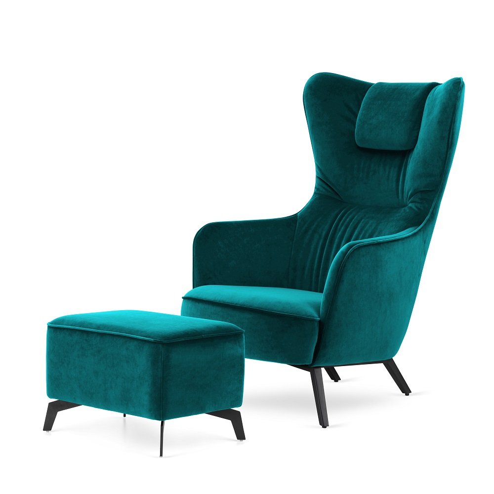 Nie zwlekaj – odkryj wyjątkowy komfort, jaki oferuje fotel Skive z podnóżkiem velvet morski (SWAN-17)! 💙