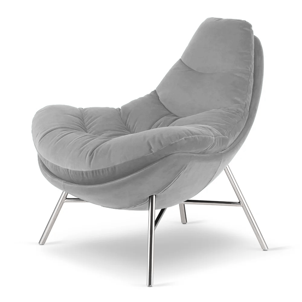 Dodatkowe przeszycia na siedzisku i oparciu nadają fotelowi elegancki, nowoczesny wygląd. Subtelny połysk velvetowej tapicerki w jasnoszarym kolorze sprawia, że fotel Sore XZ prezentuje się doskonale w świetle naturalnym i sztucznym. To mebel, który zachwyca z każdej strony i pod każdym kątem.